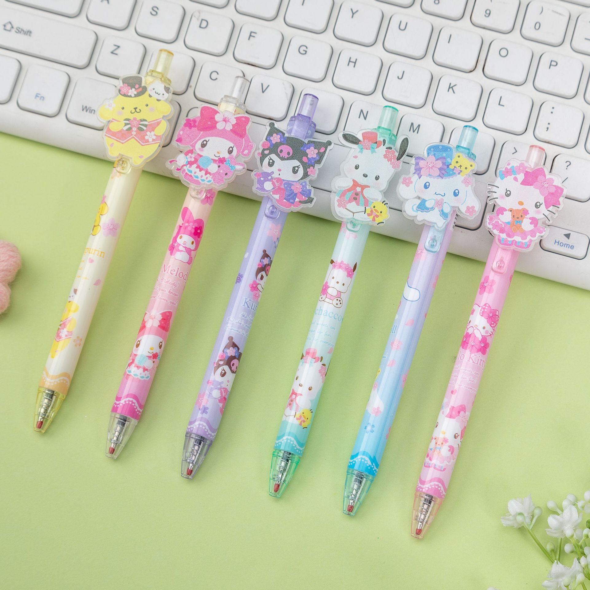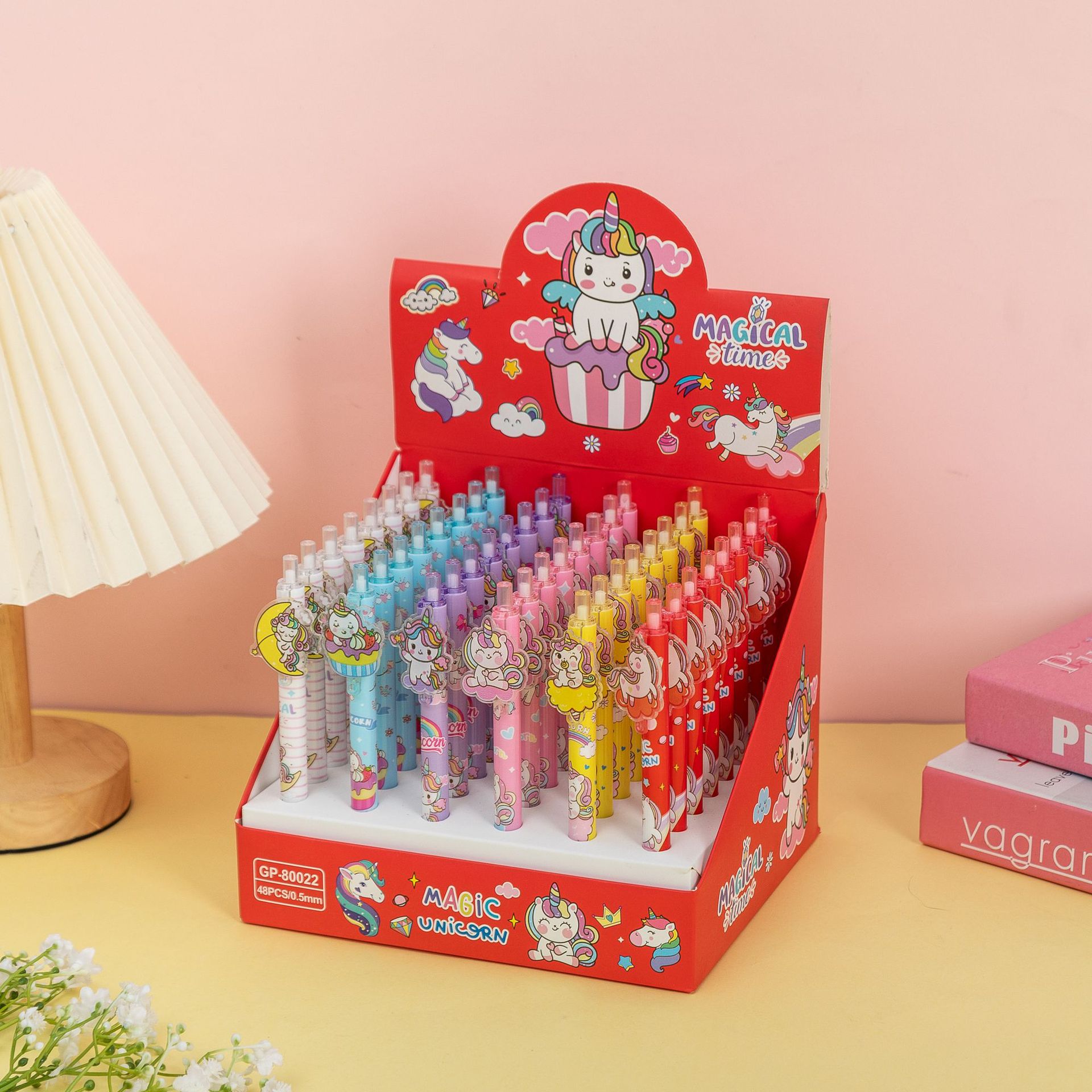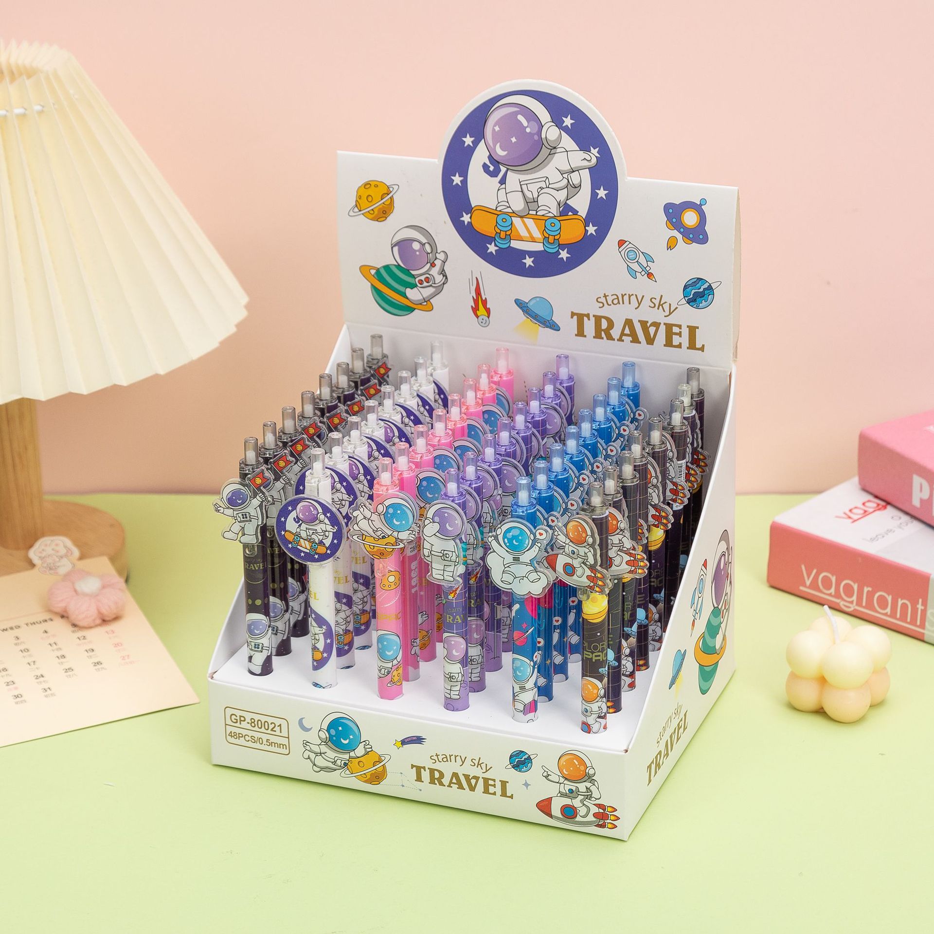 Parche de dibujos animados Bolígrafo de góner de prensa Bolígrafo negro Bolígrafo de firma de escritura de examen de estudiante en caja