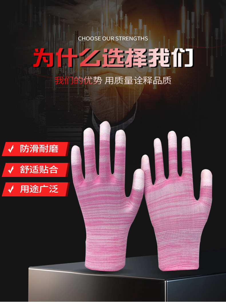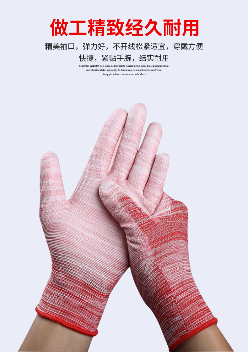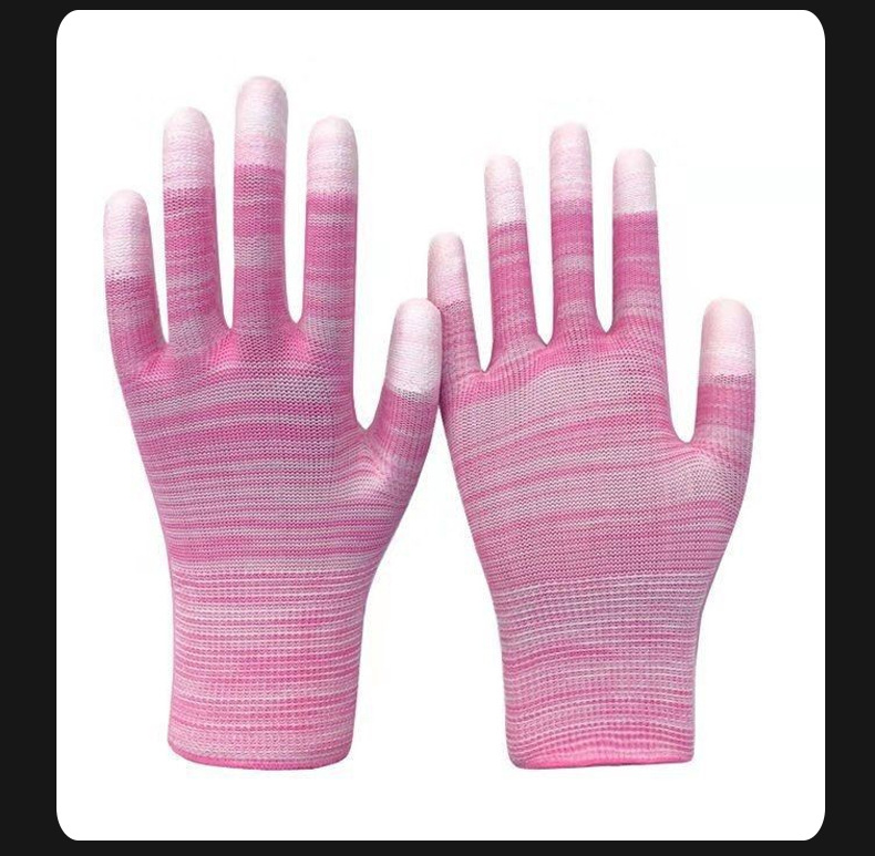 Pantalla de nylon PU recubierto de dedos recubierto guantes de palma delgados anti-desgaste electrónicos sin polvo antiestático fábrica al por mayor guantes de protección laboral