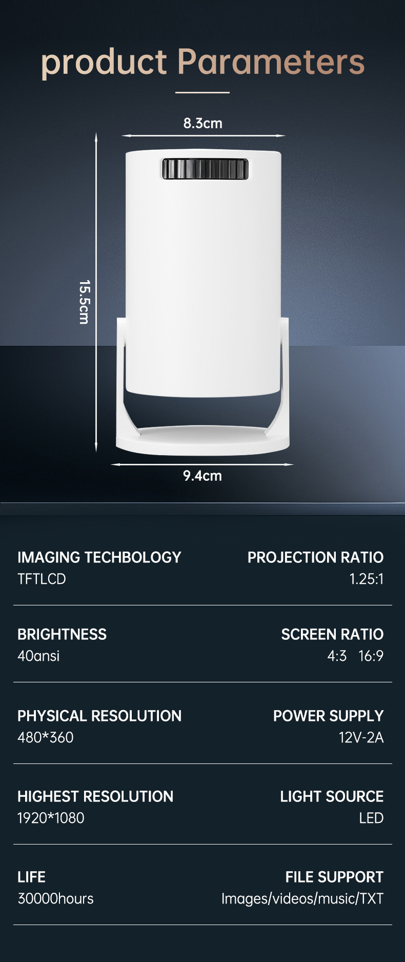 | Categoría de producto | Proyector portátil |