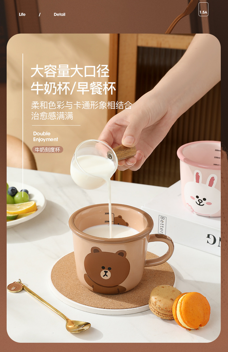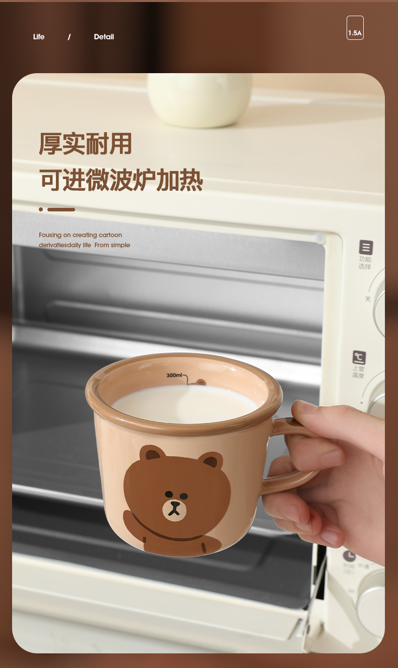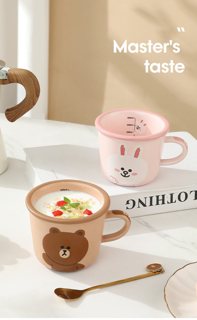 Taza de cerámica oso marrón caricatura linda taza de escala de leche pareja taza resistente a altas temperaturas taza de agua para estudiantes