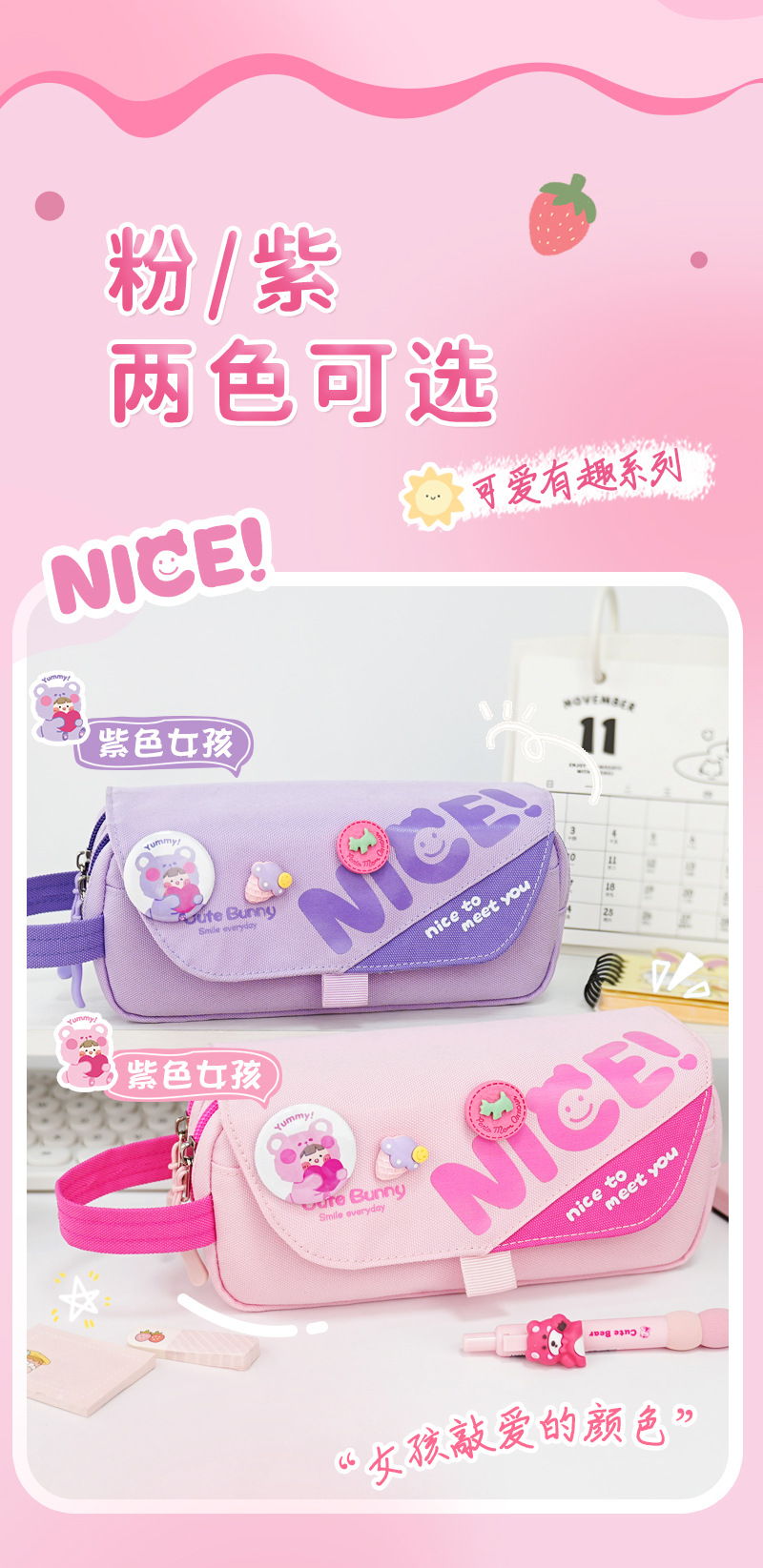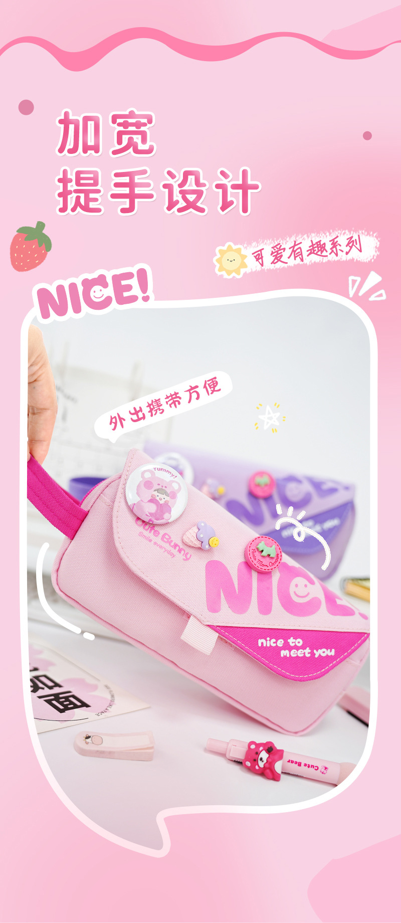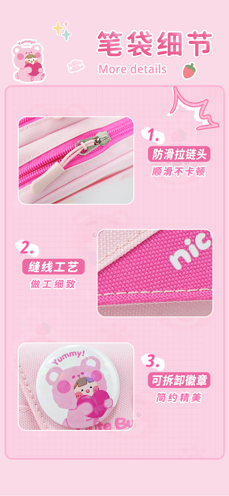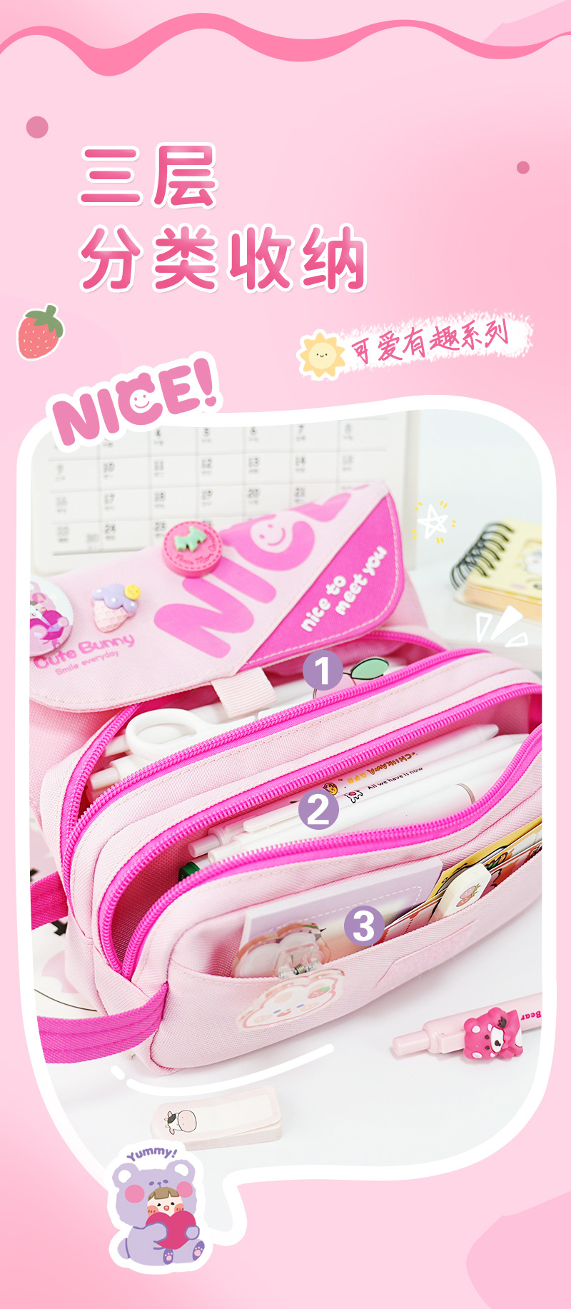 2025 nuevo lindo estuche para lápices caja de papelería para niñas de gran capacidad insignia de oso de dibujos animados bolsa de papelería con tapa de múltiples capas