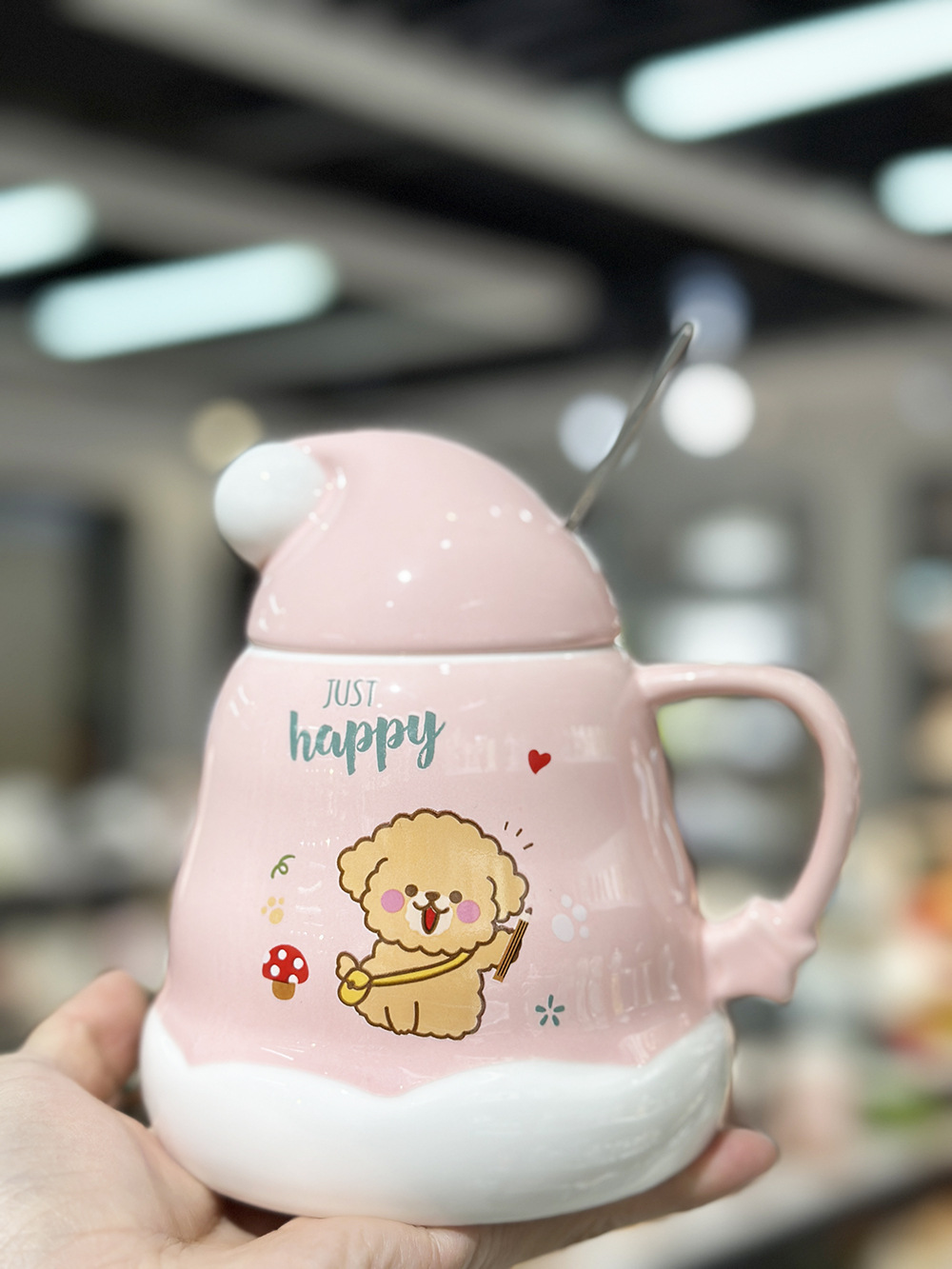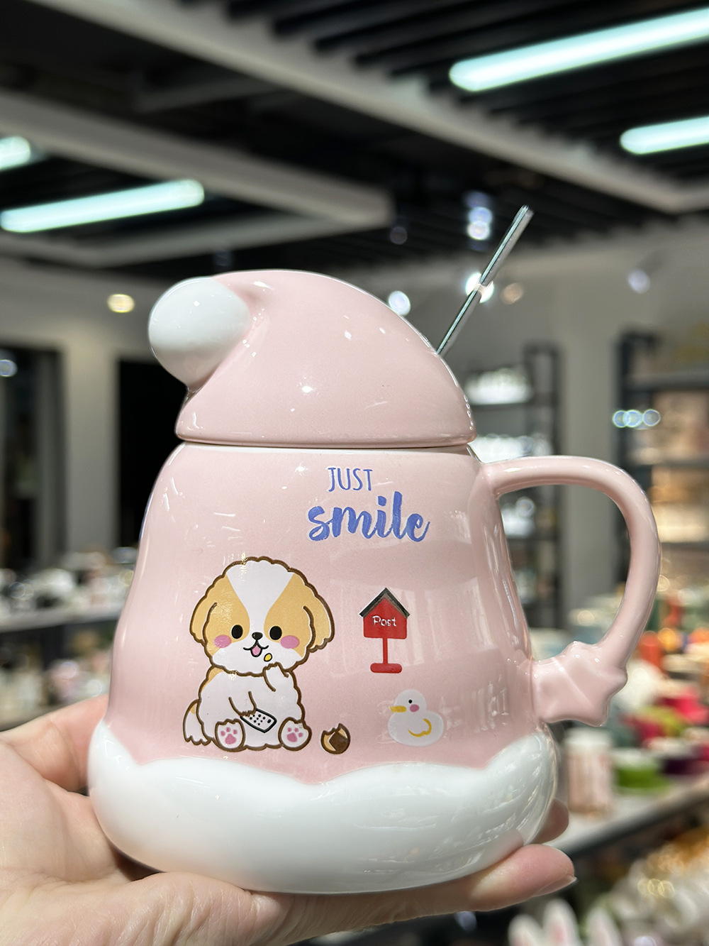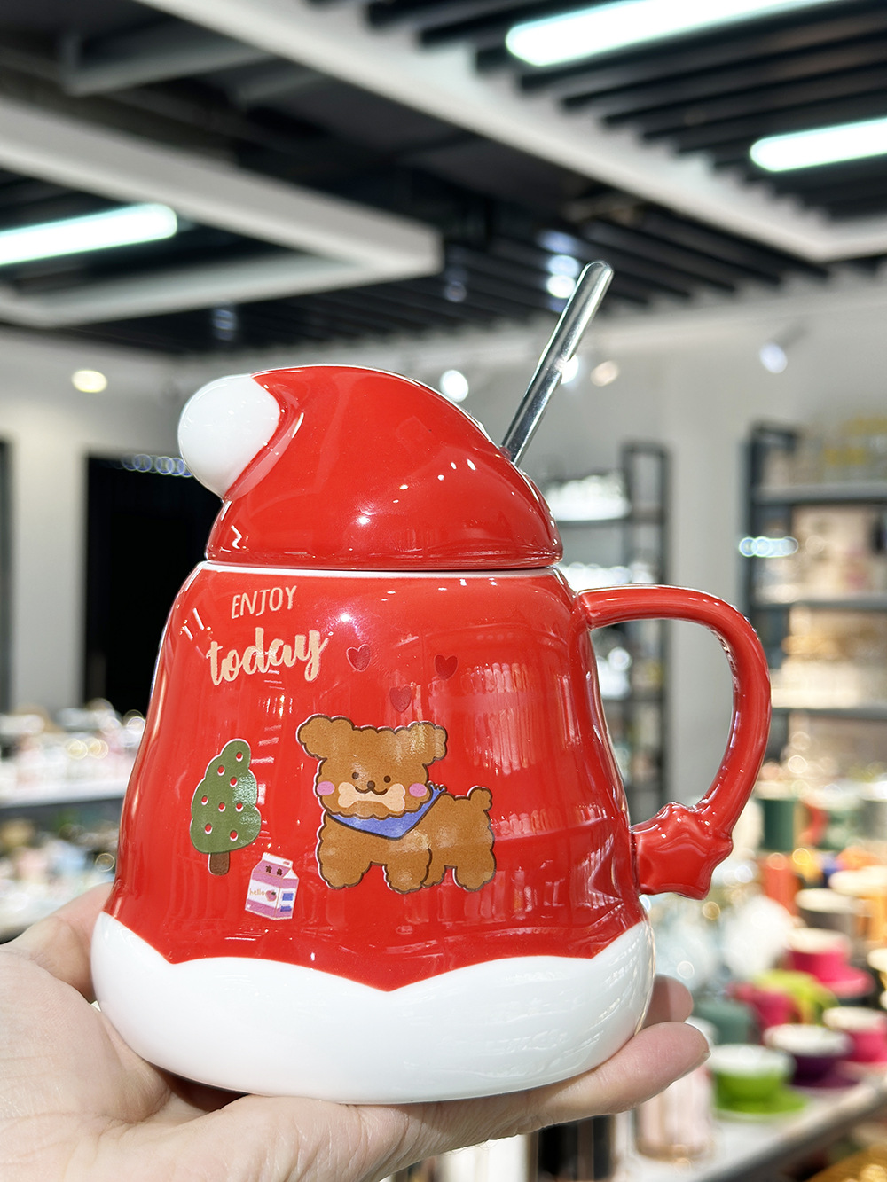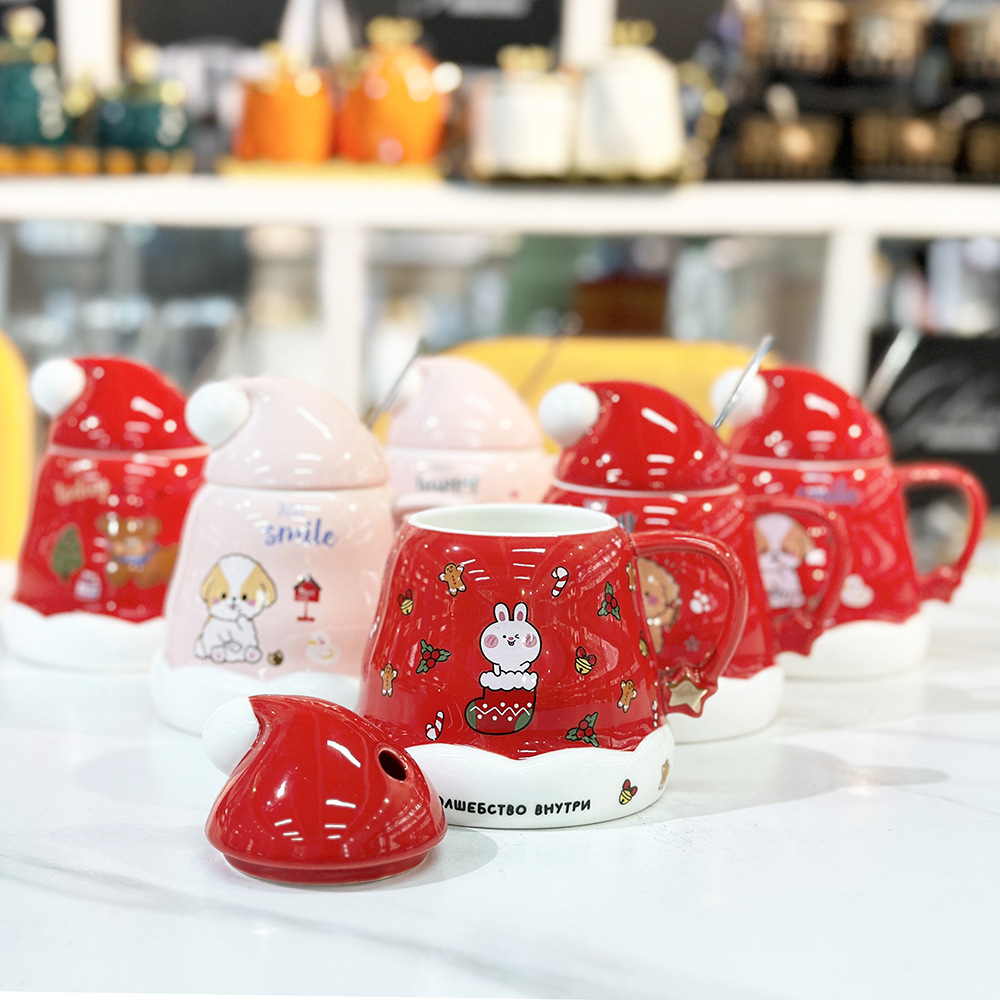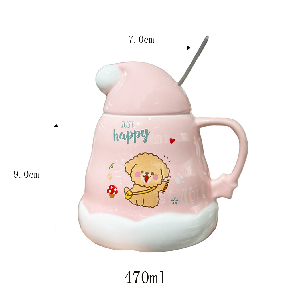 Caricatura encantadora cachorro taza de cerámica de Navidad regalo de Navidad taza de agua doméstica taza de oficina taza con cubierta cuchara