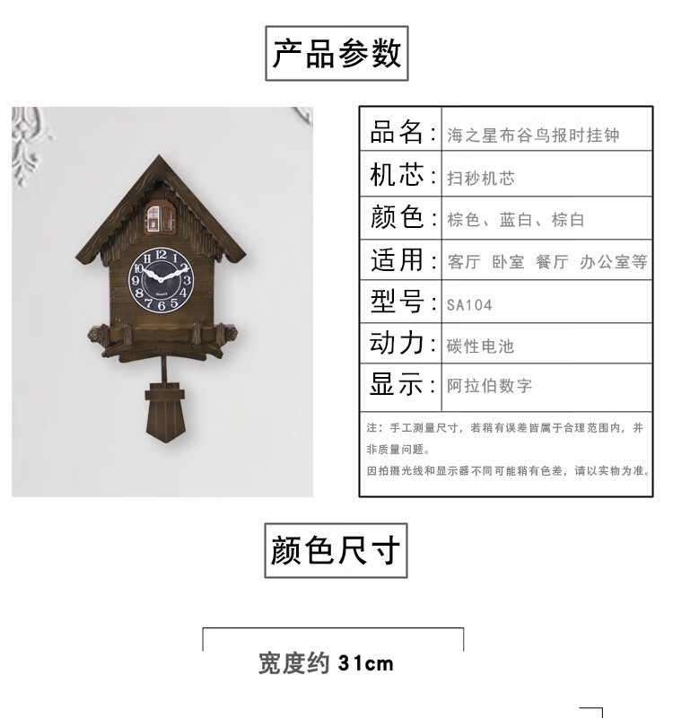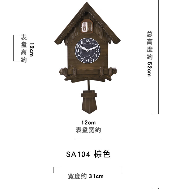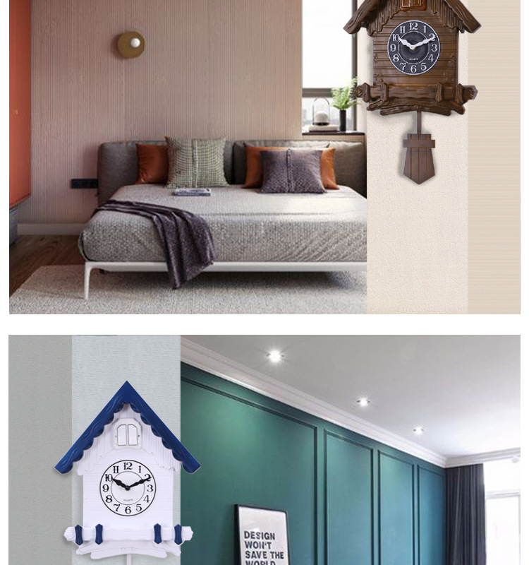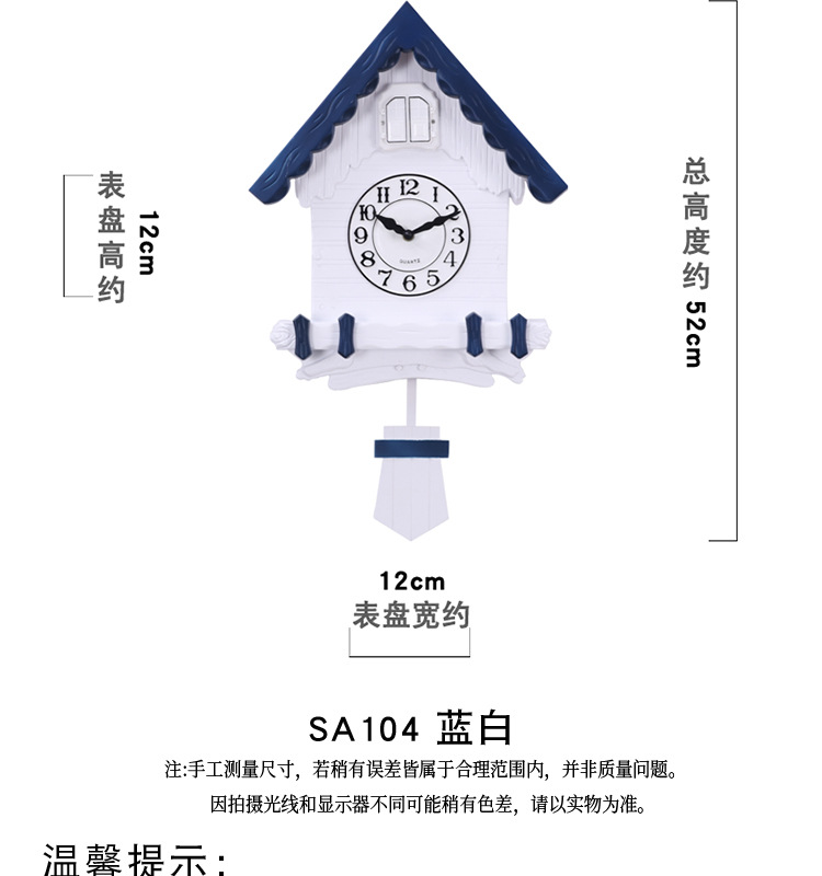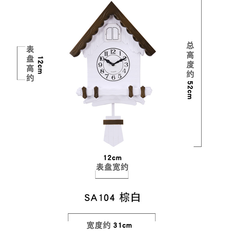 Reloj de pared con forma de casa y cuco estilo europeo - Diseño cartoon - Para dormitorio infantil y sala de estar - Anuncia la hora