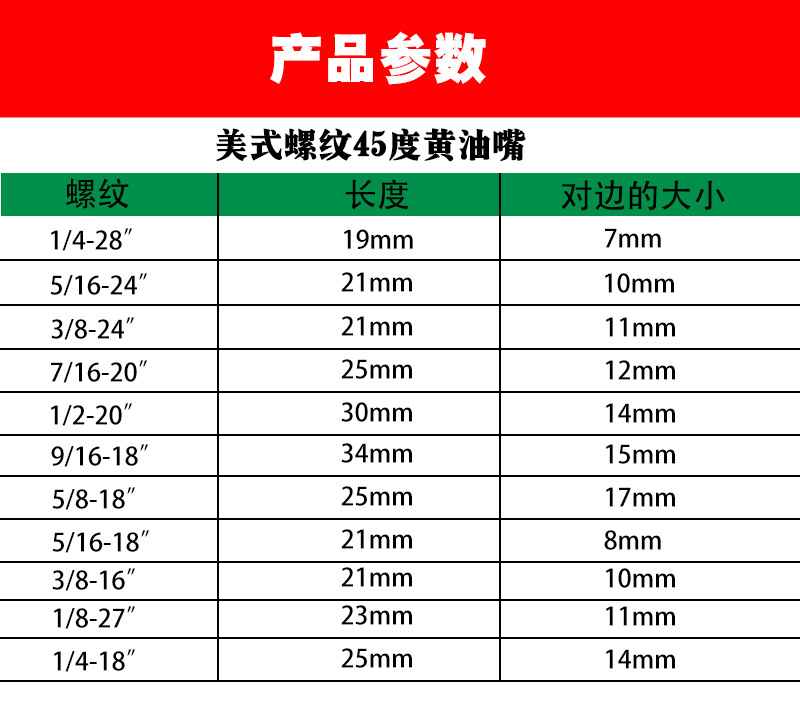 | Accesorio No. | Boquilla de grasa americana de 45 grados |