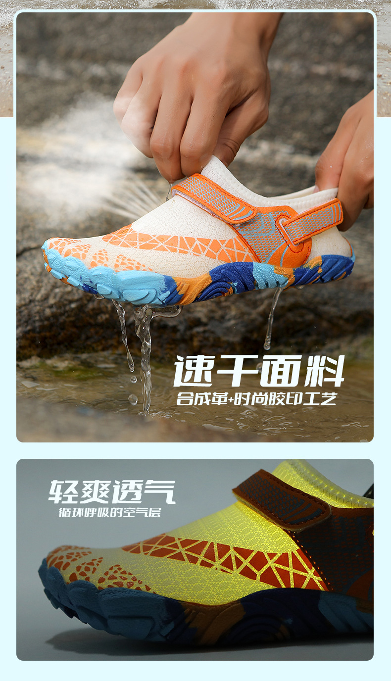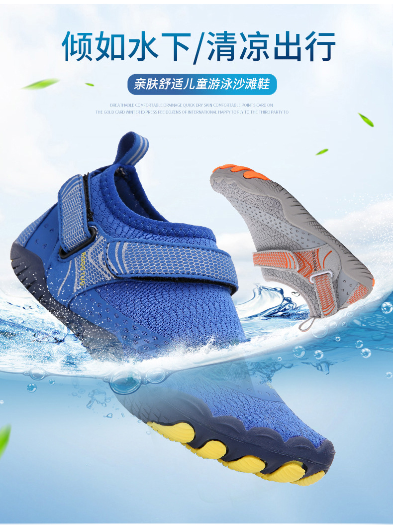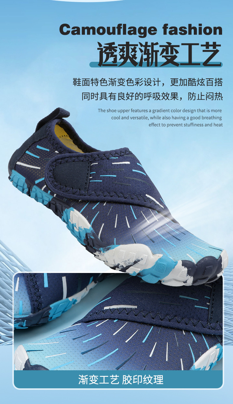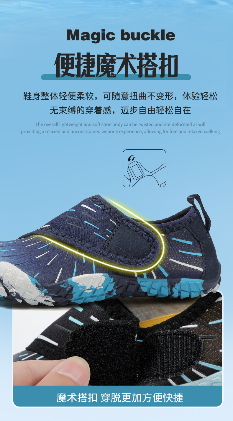 Nuevos zapatos de playa para niños al aire libre transfronterizos, zapatos de vadeo de cinco dedos, zapatos de buceo, zapatos de natación antideslizantes gruesos