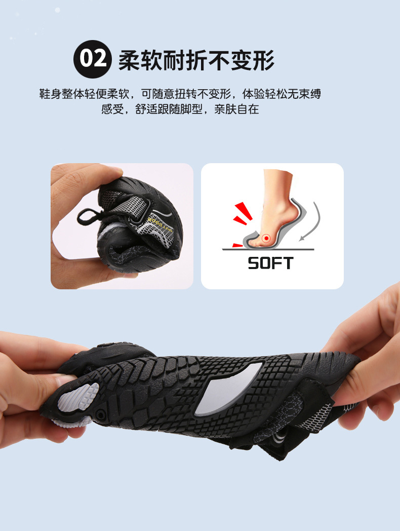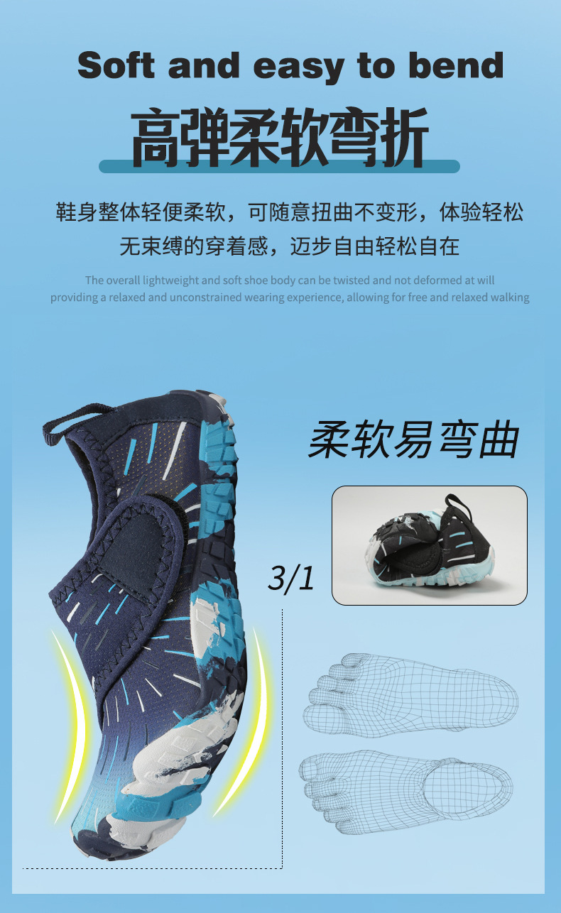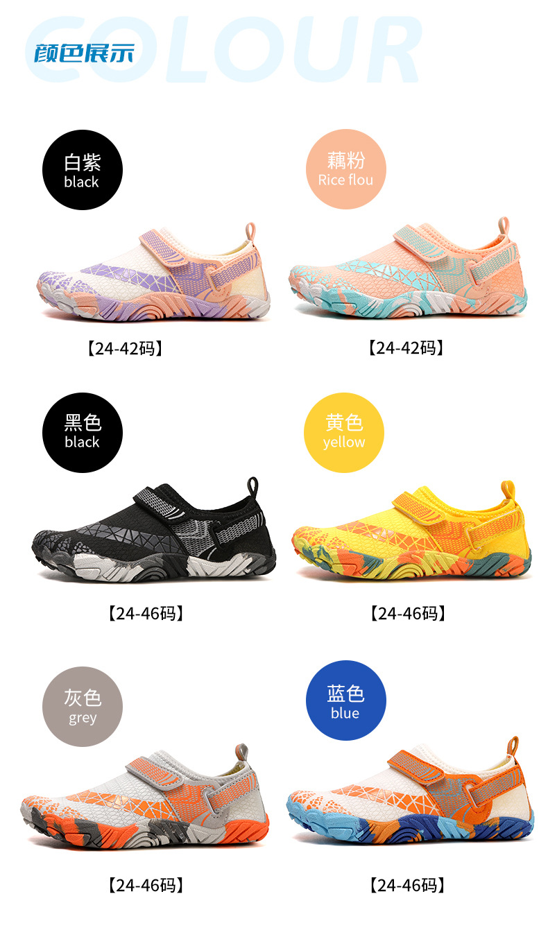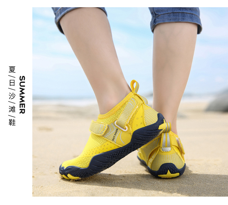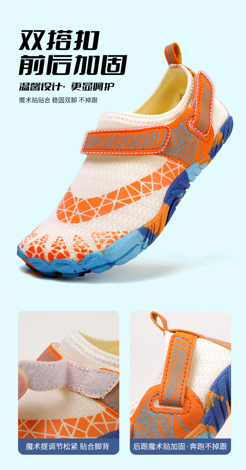 Nuevos zapatos de playa para niños al aire libre transfronterizos, zapatos de vadeo de cinco dedos, zapatos de buceo, zapatos de natación antideslizantes gruesos