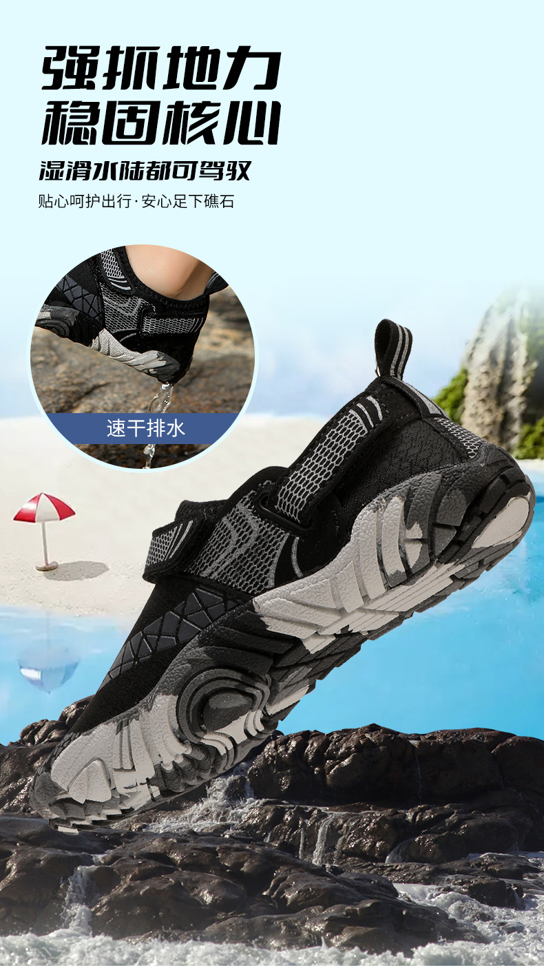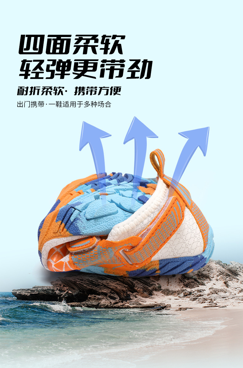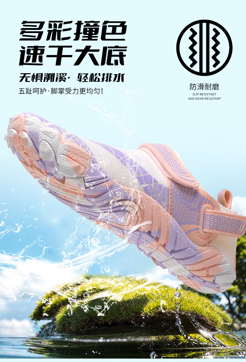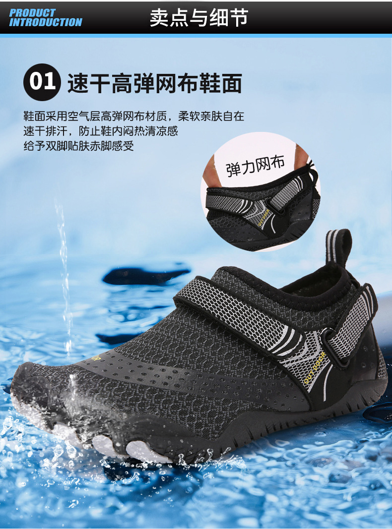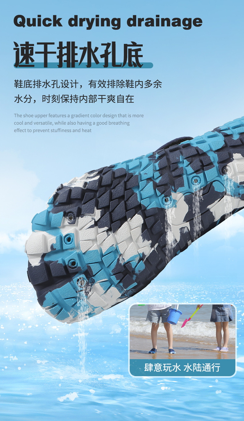 Nuevos zapatos de playa para niños al aire libre transfronterizos, zapatos de vadeo de cinco dedos, zapatos de buceo, zapatos de natación antideslizantes gruesos