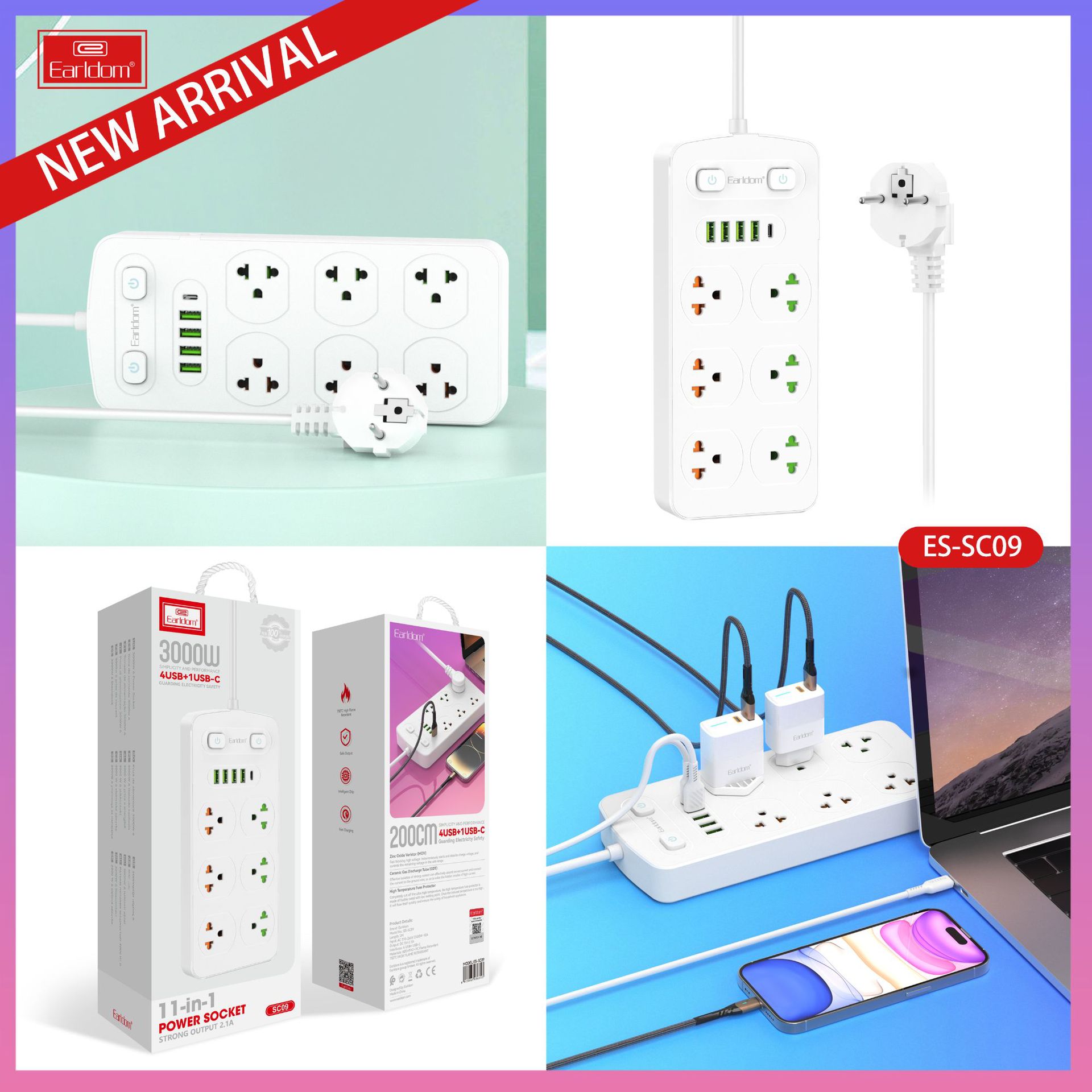 Transfronterizo multi-funcional inteligente enchufe PD Puerto + 4USB hogar poroso socket de alta potencia Placa de cableado