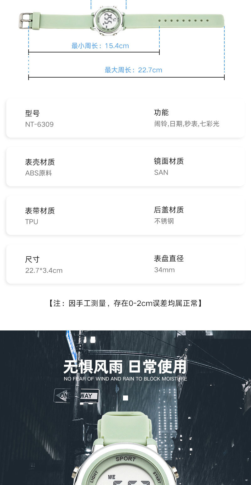 | Color | NT-6309 (verde),NT-6309 (azul claro),NT-6309 (negro),NT-6309 (Rosa Roja),NT-6309 (azul),NT-6309 (púrpura),NT-6309 (rosa claro),NT-6309 (blanco),NT-6309 (púrpura claro),NT-6309 (rojo) |