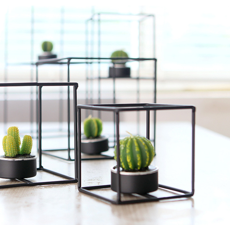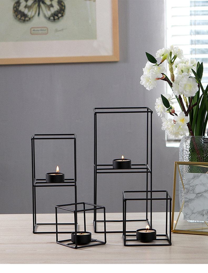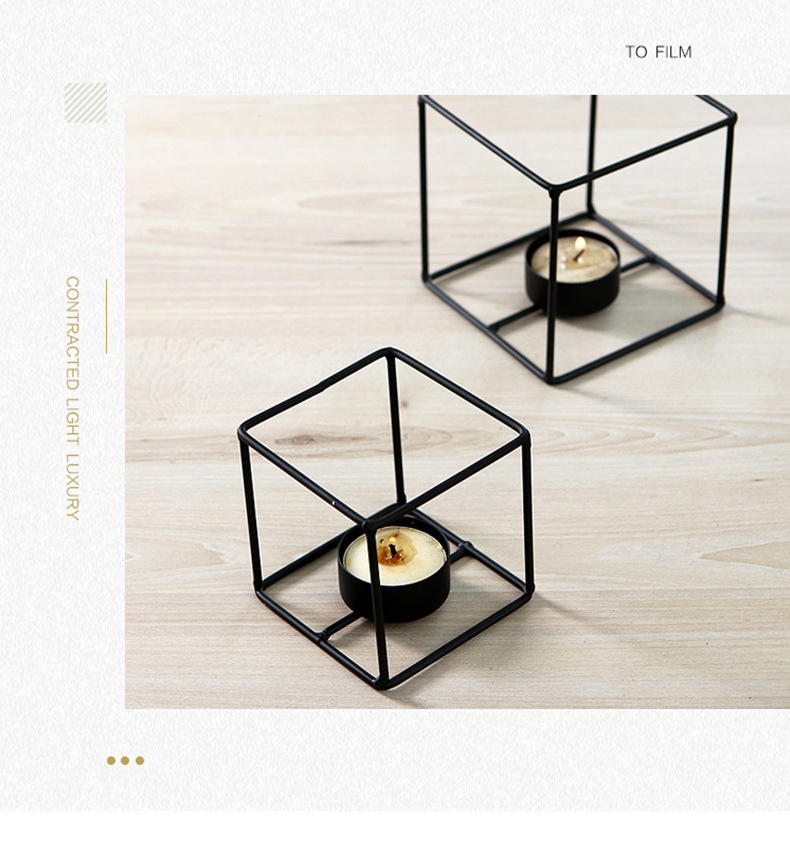 En stock al por mayor moderno simple geométrico líneas Cuboid candelero decoración creativa con velas cena apoyos vela titular
