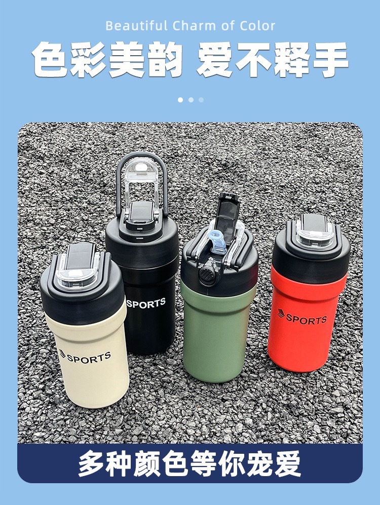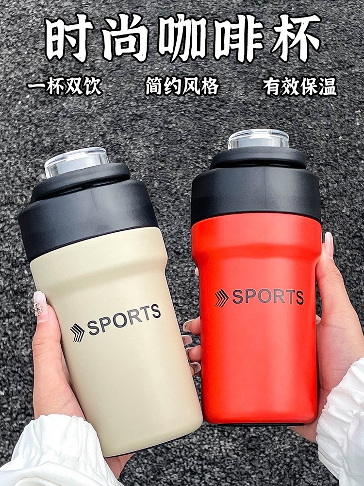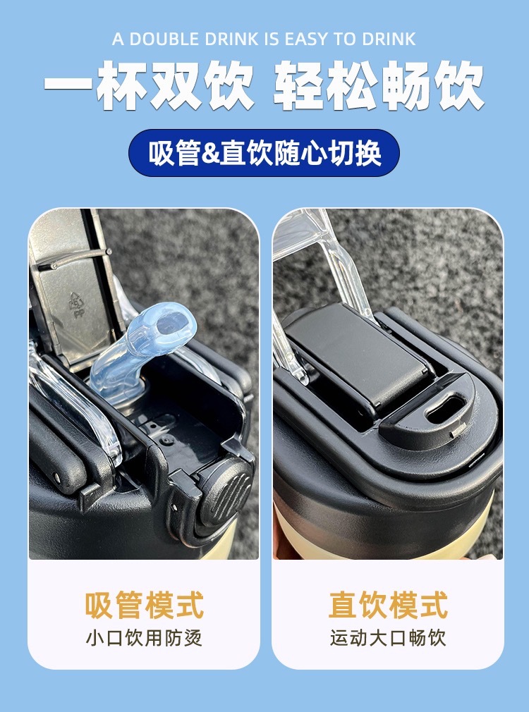 Taza termo de café conveniente de las mujeres de alto diseño de la taza de agua sentido nicho niños bebida doble taza portátil al aire libre con paja