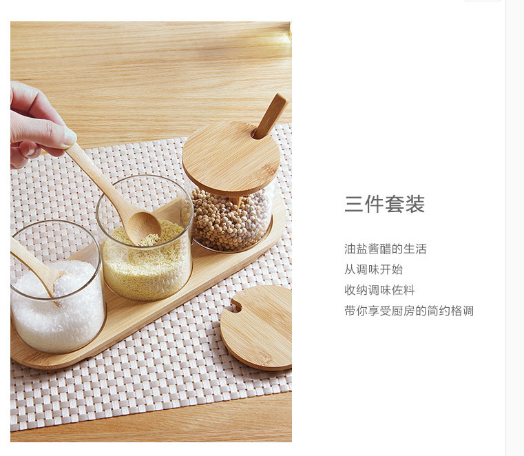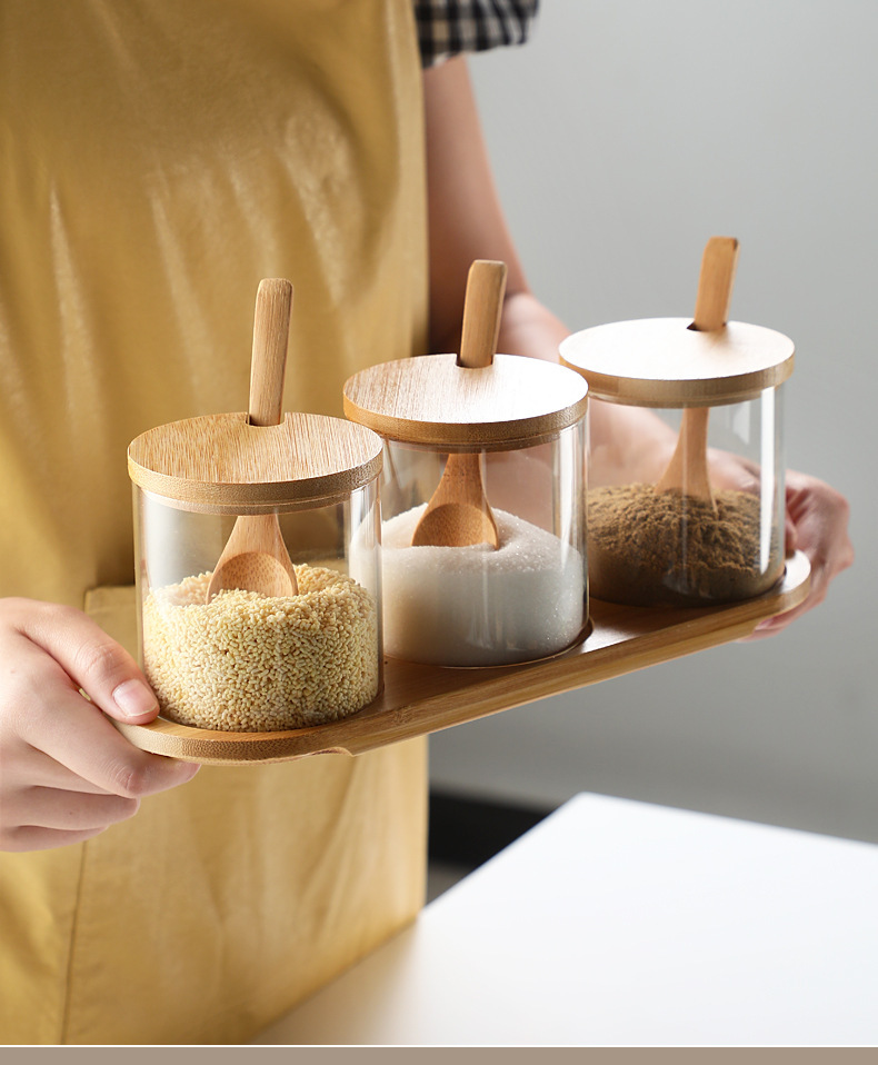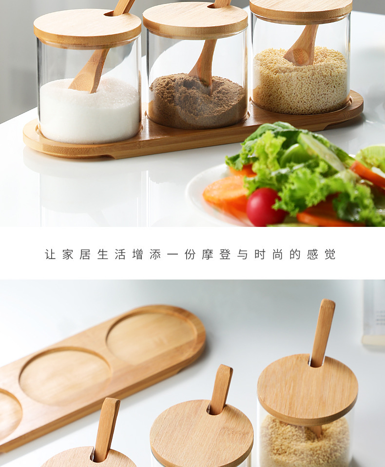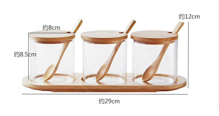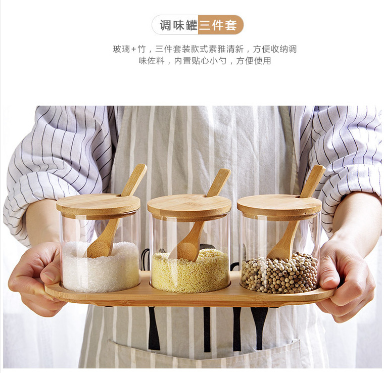 Cocina vidrio condimento tarro condimento caja vidrio tres piezas traje condimento botella combinación aceite y sal tarro