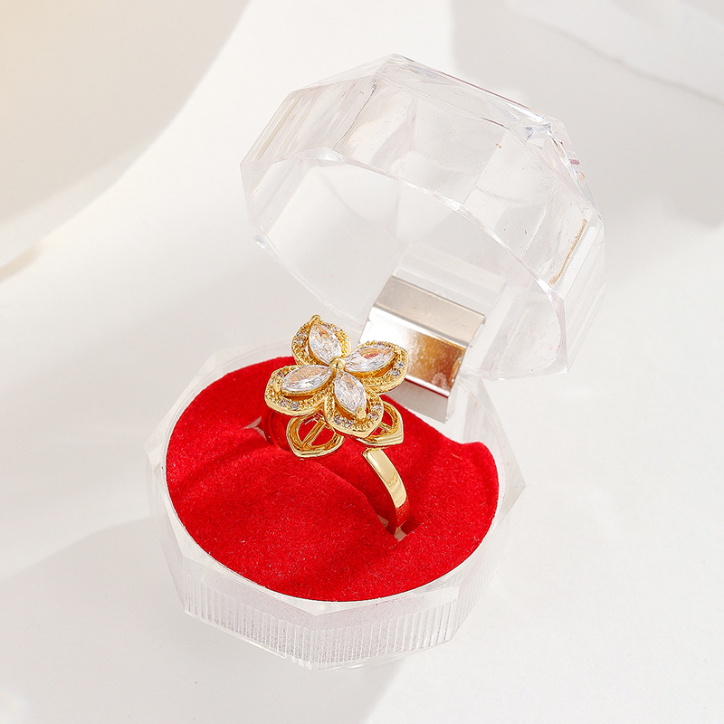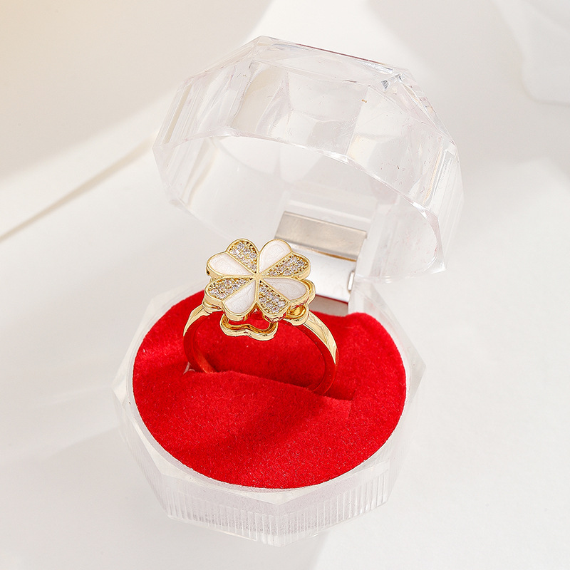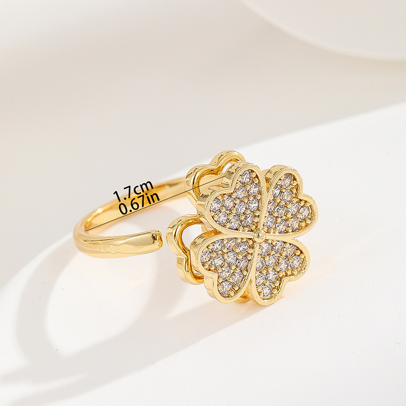18K oro real color-preservar la suerte de la hierba estilo coreano transfronterizo diamante incrustado rotación de moda abierto anillo ajustable