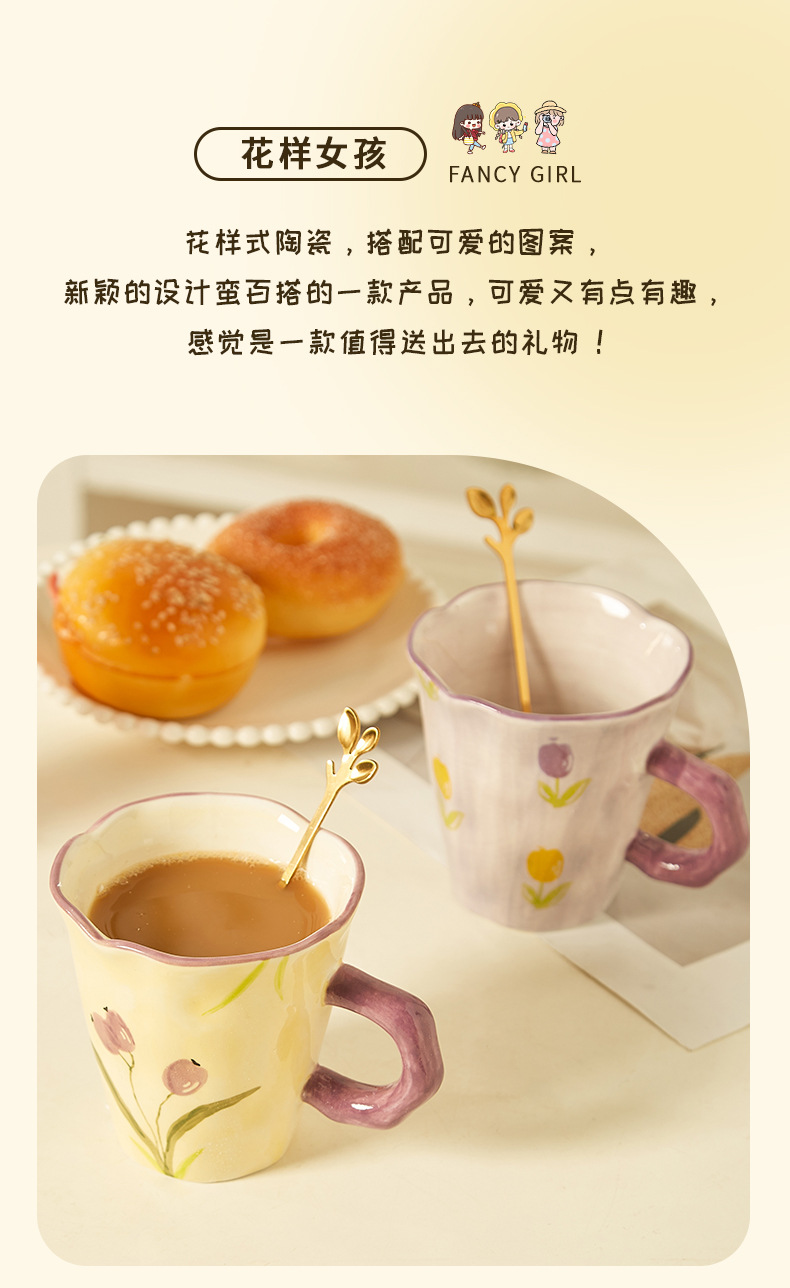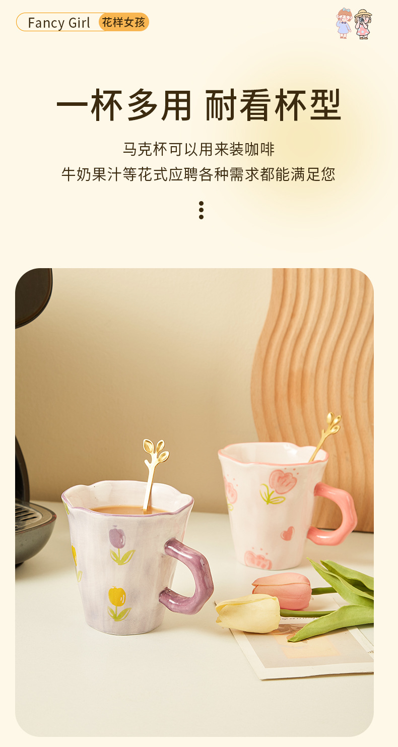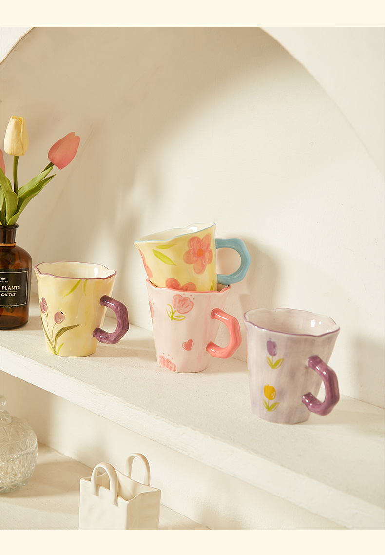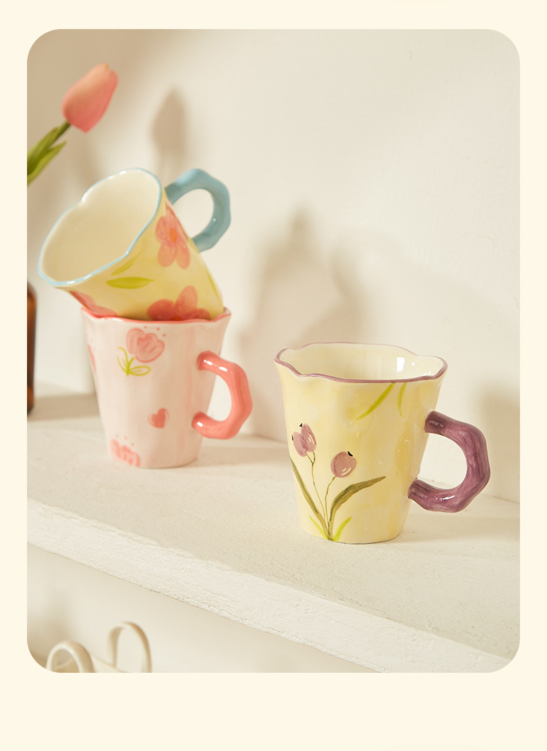 Creativa mano pequeña taza de tulipán fresca taza de cerámica flor pintada a mano taza de oficina caja de regalo taza de café y leche