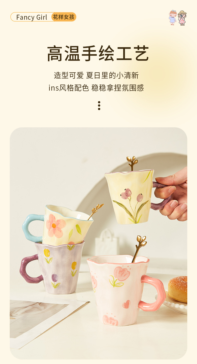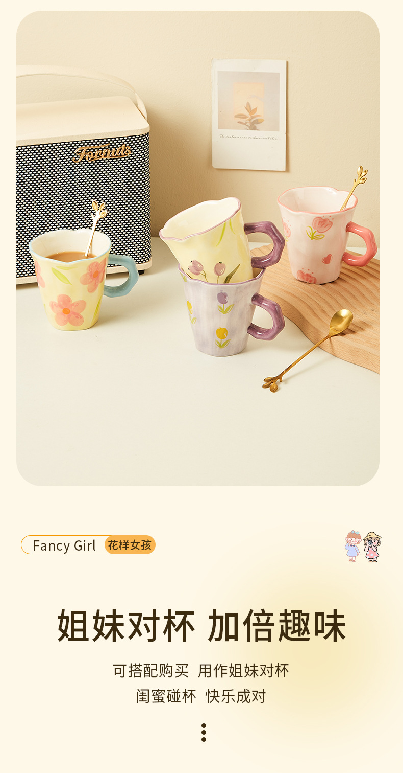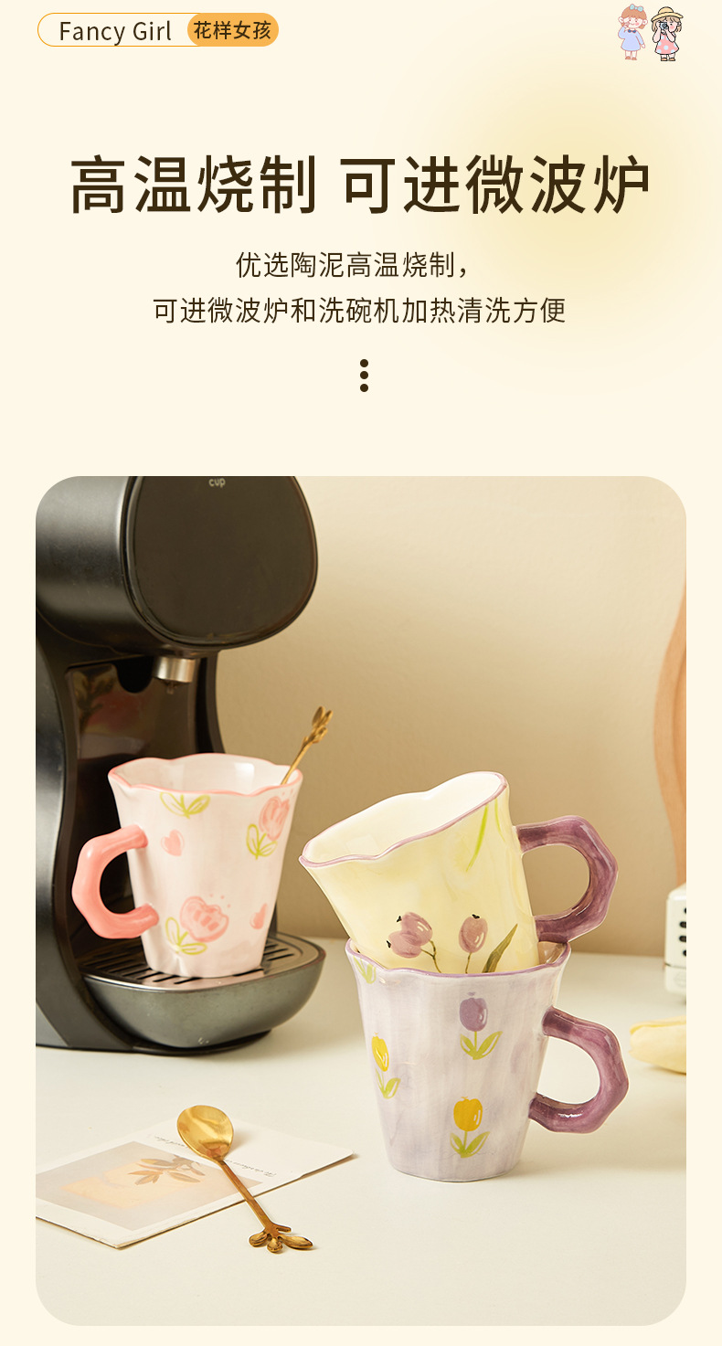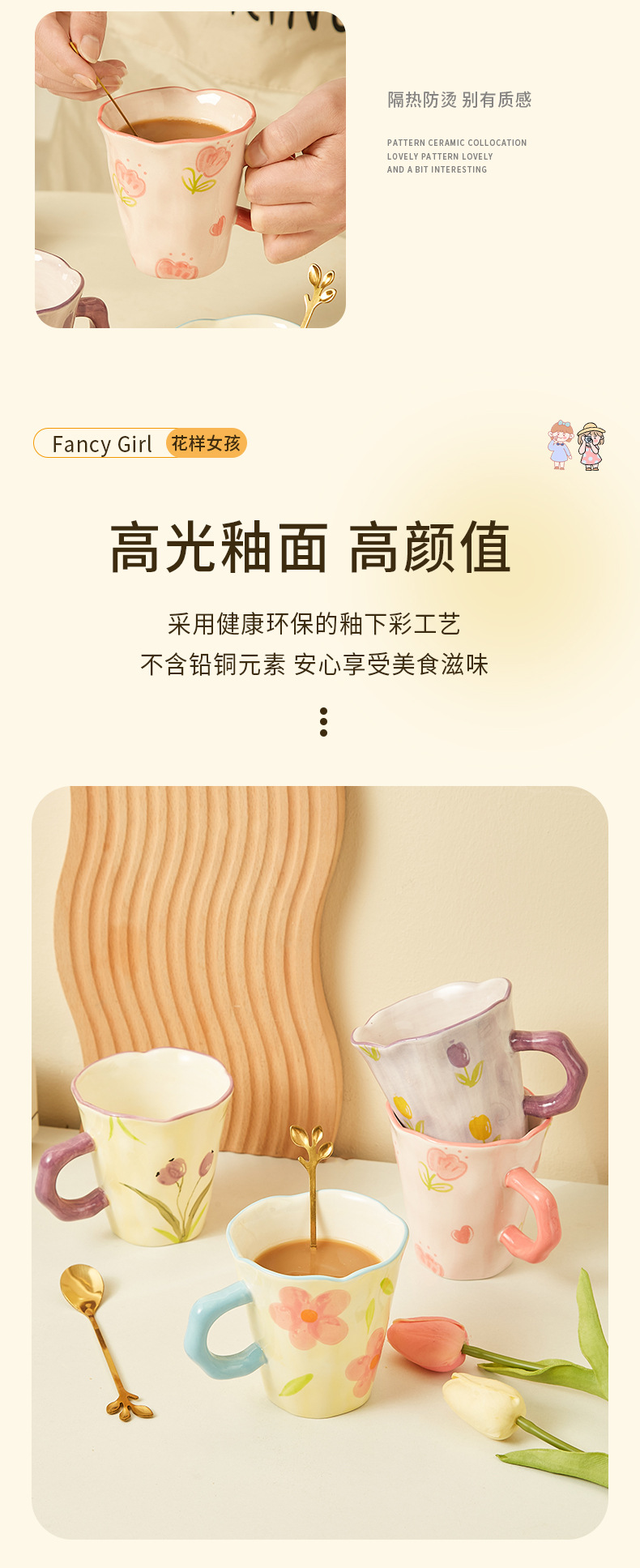 Creativa mano pequeña taza de tulipán fresca taza de cerámica flor pintada a mano taza de oficina caja de regalo taza de café y leche