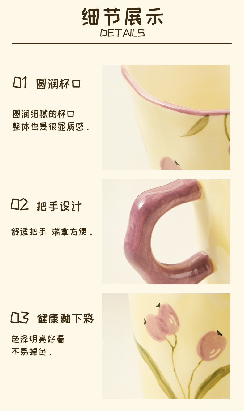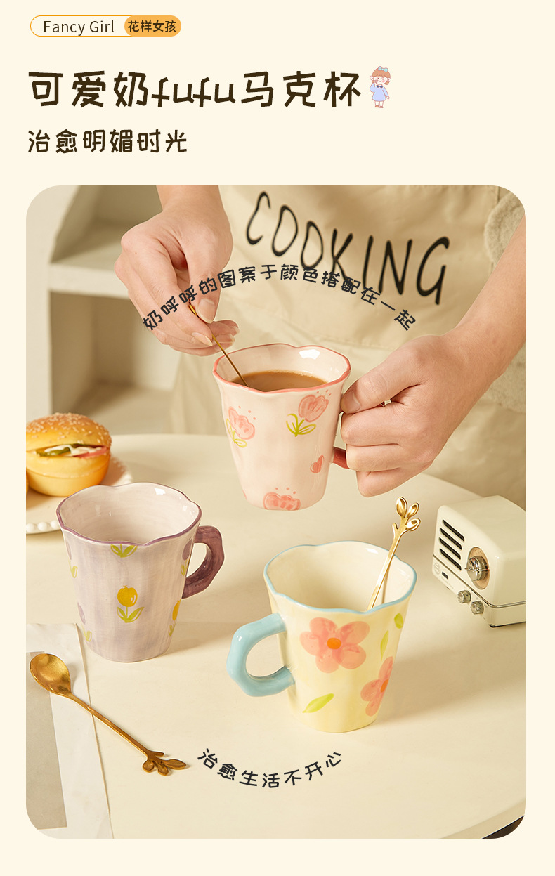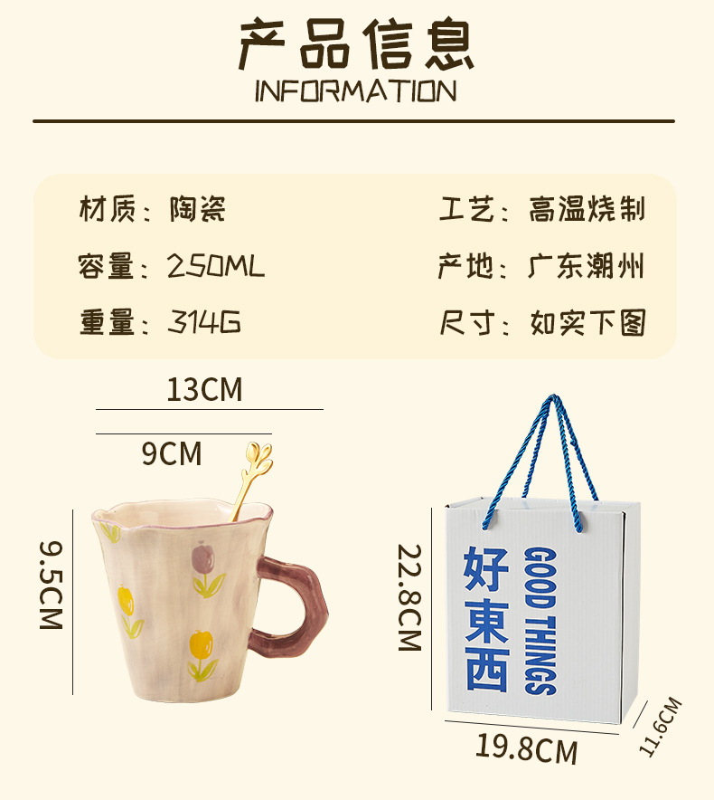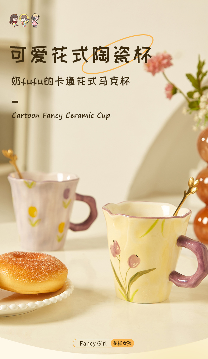 Creativa mano pequeña taza de tulipán fresca taza de cerámica flor pintada a mano taza de oficina caja de regalo taza de café y leche