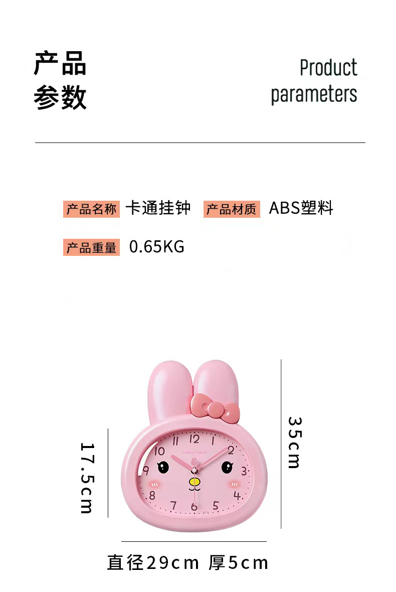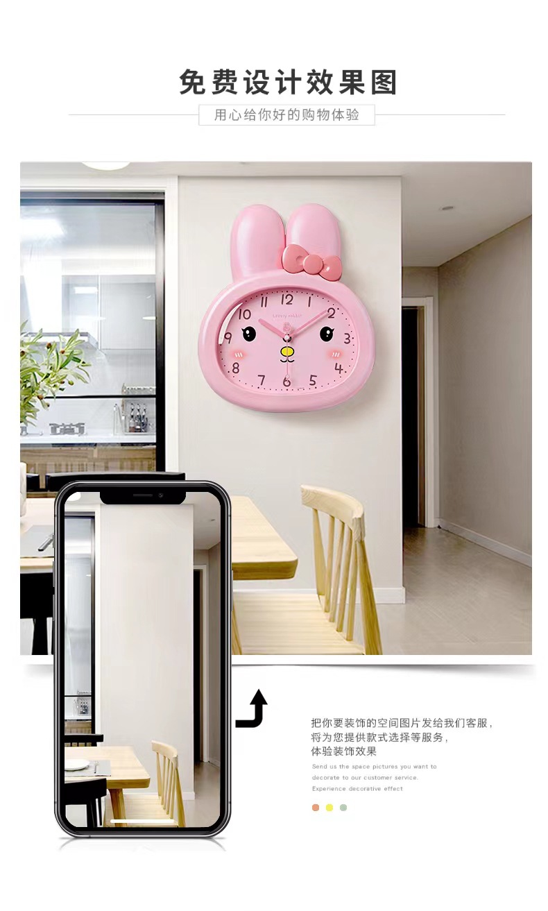 Reloj de pared de dibujos animados de conejo sala de niños sala de estar moda reloj de pared dormitorio nuevo reloj silencioso 2023
