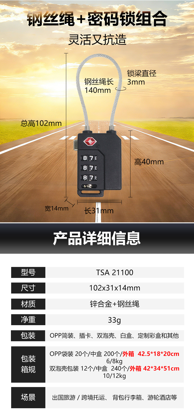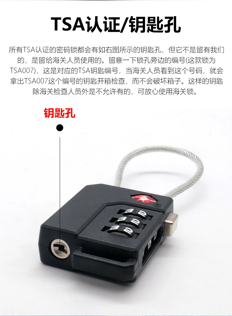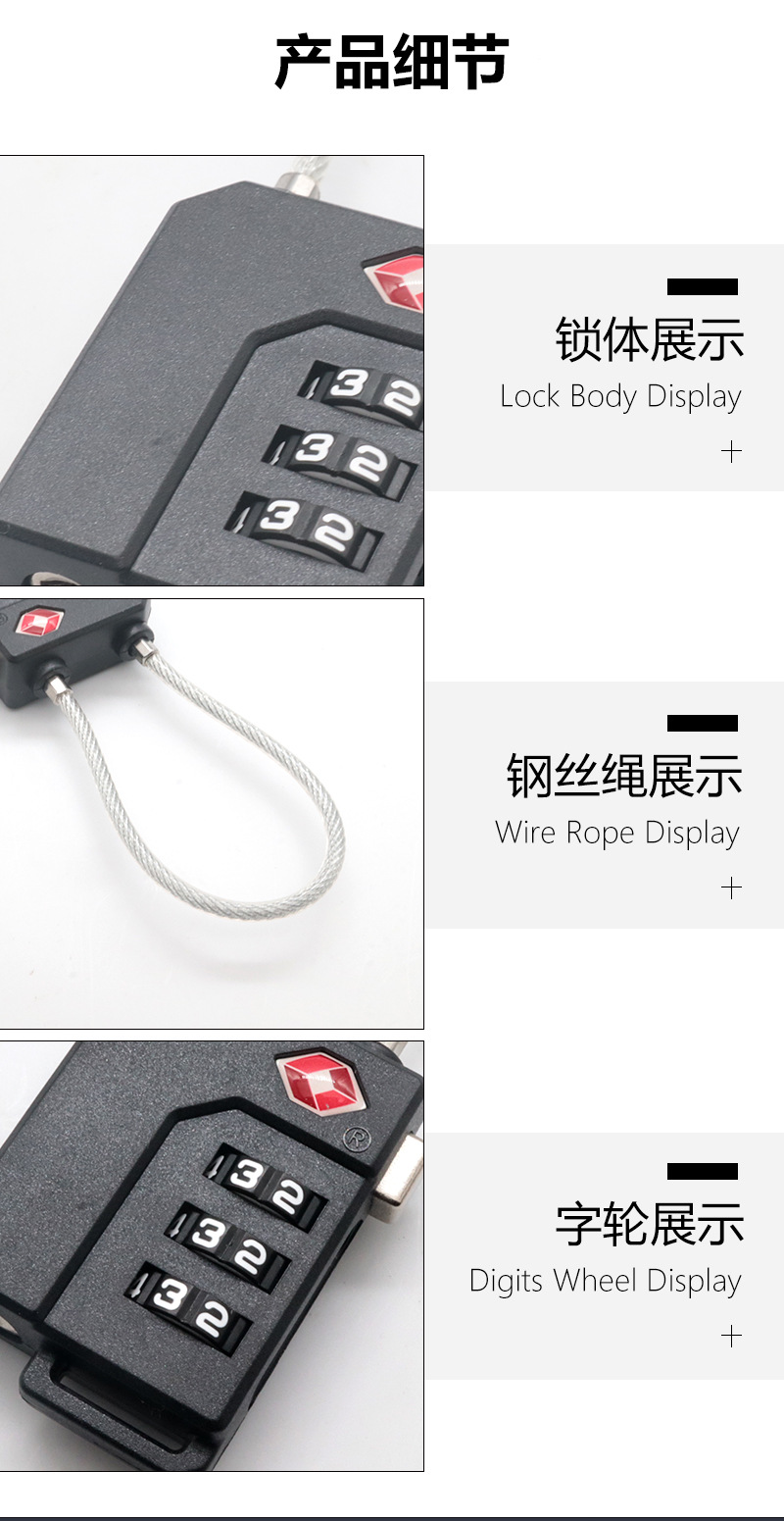 Candado de cable de acero con combinación de 3 dígitos TSA, material PC de alta calidad, para equipaje y seguridad