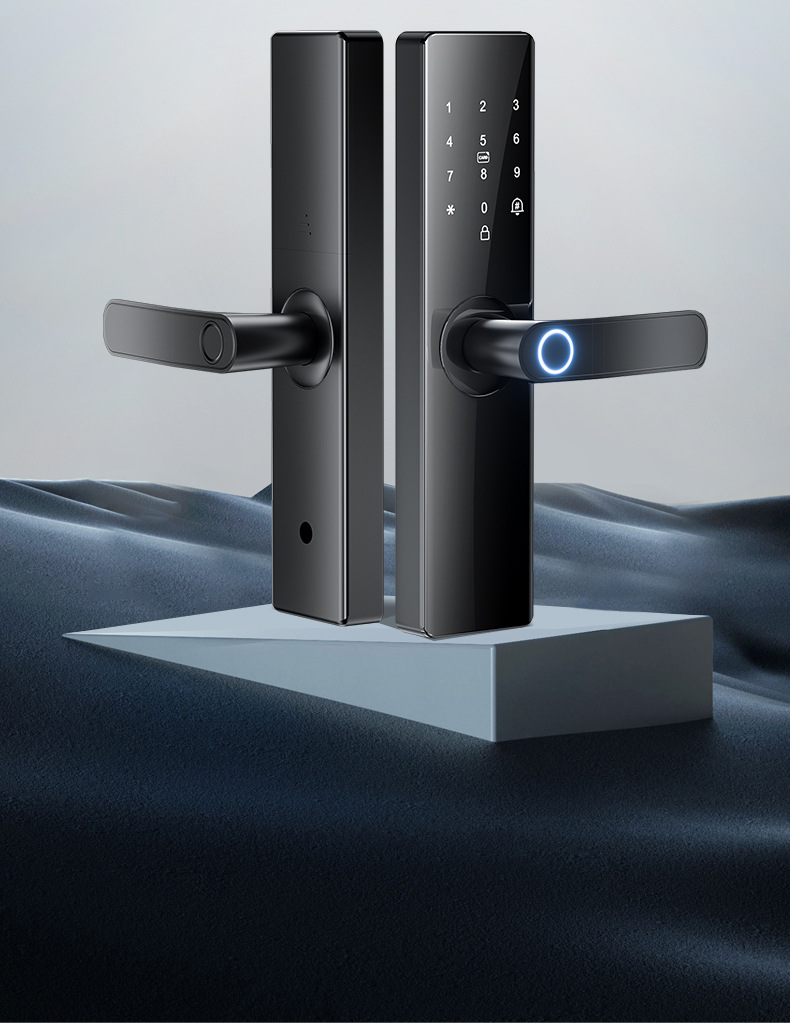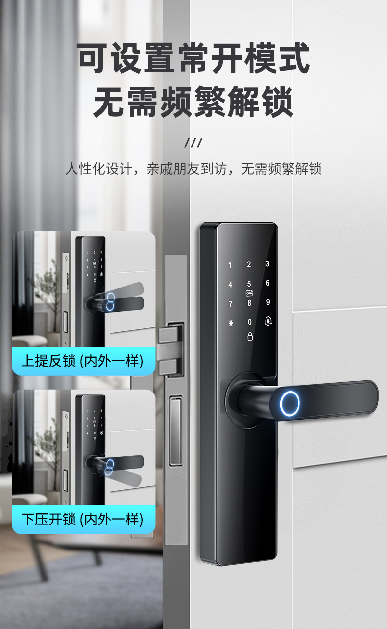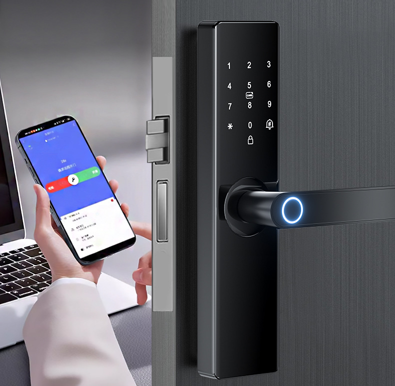 Cerradura electrónica semiautomática con huella dactilar y teclado, compatible con Tuya, para puertas de madera