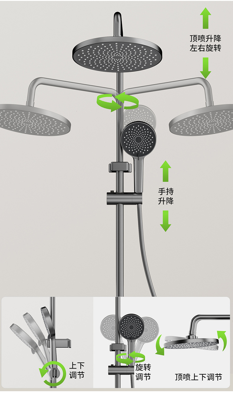 Juego de ducha de lujo ligero, ducha de baño para el hogar, ducha más manguera, ducha de refuerzo, ducha gris
