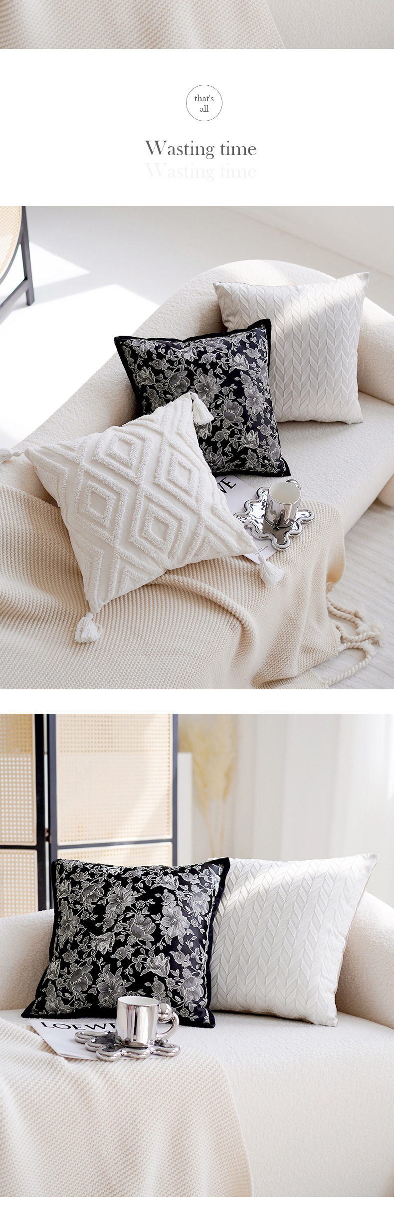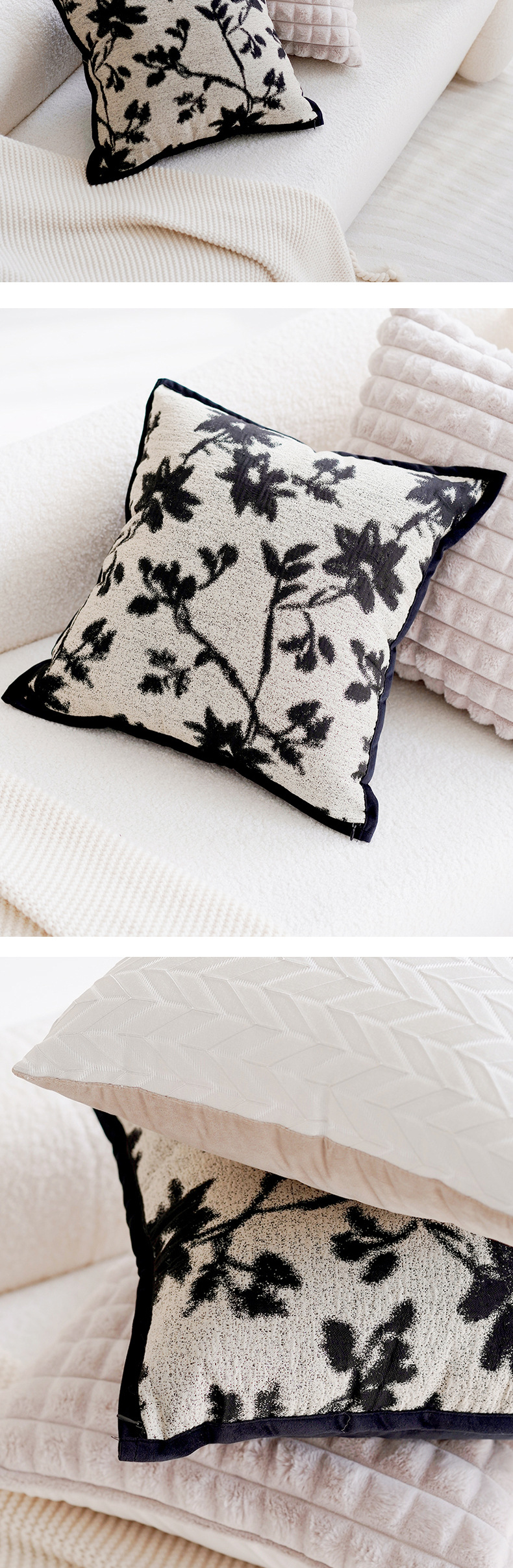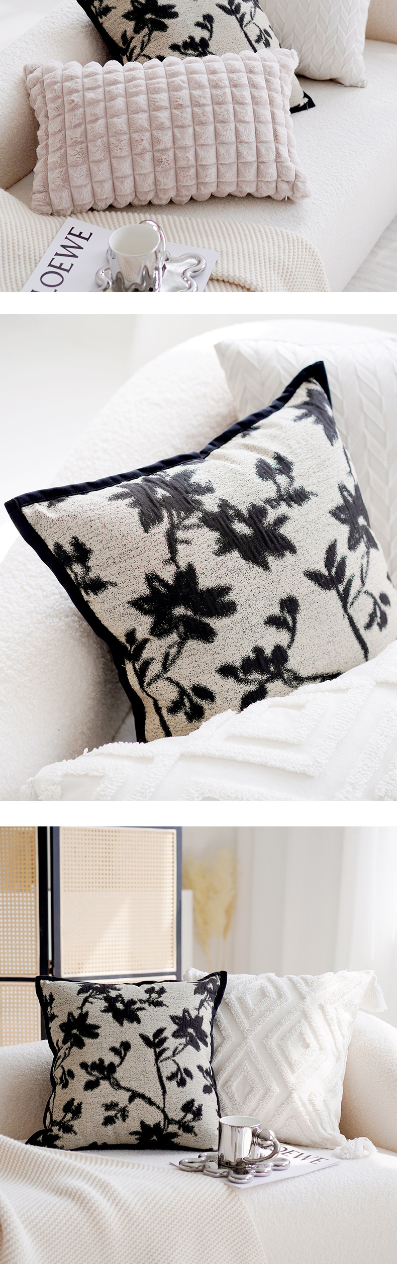 Cojín de estilo francés retro floral funda de almohada moderna simple blanco y negro almohada americana sala de estar sofá cojín estilo Chanel