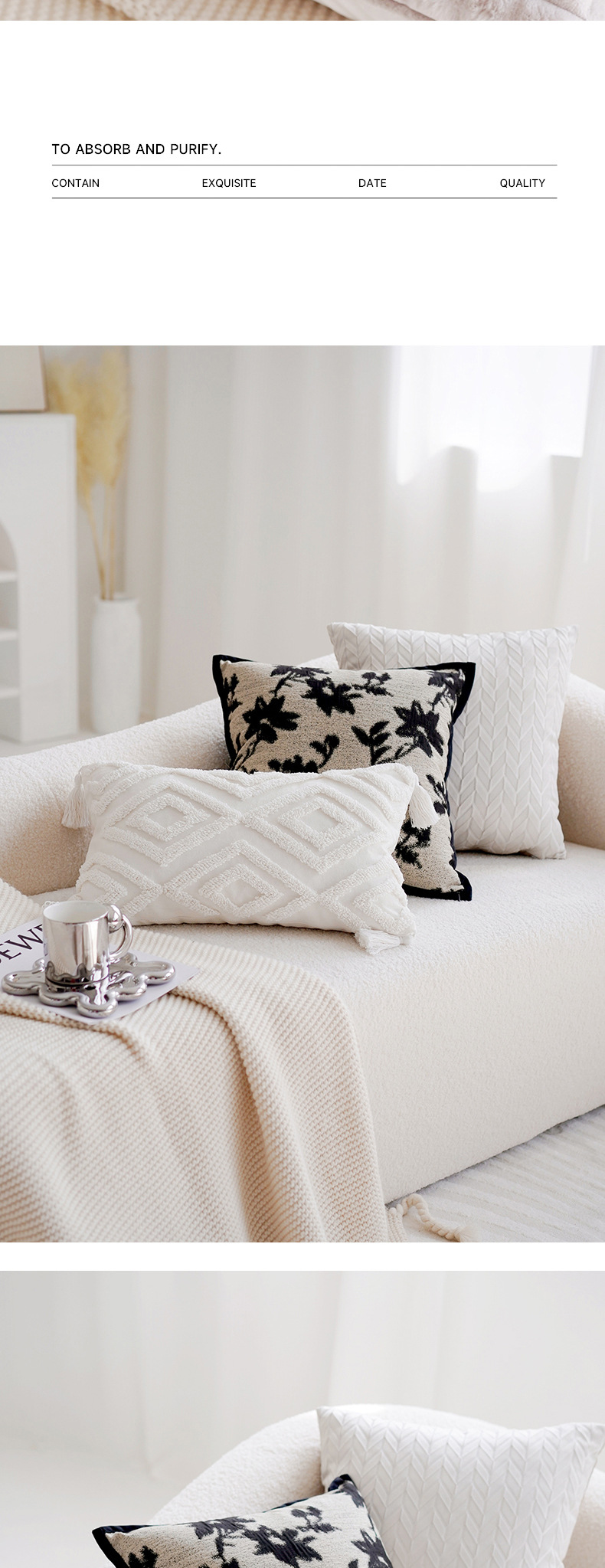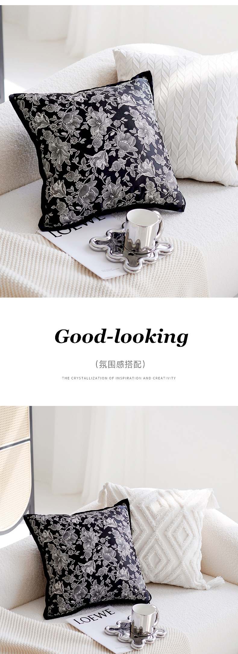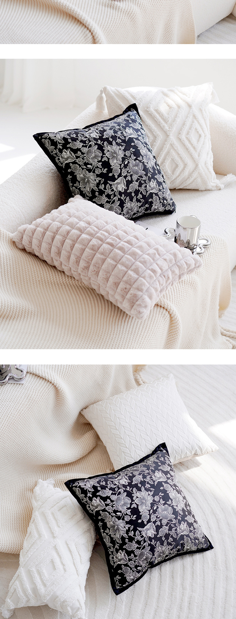 Cojín de estilo francés retro floral funda de almohada moderna simple blanco y negro almohada americana sala de estar sofá cojín estilo Chanel