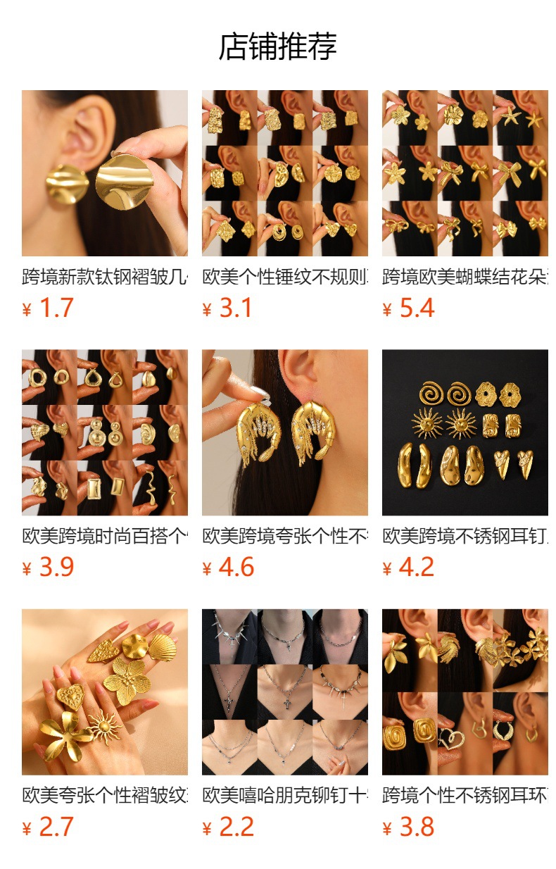 Pendientes geométricos plisados de acero de titanio para mujeres transfronterizas nuevos pendientes encantadores cuadrados redondos irregulares