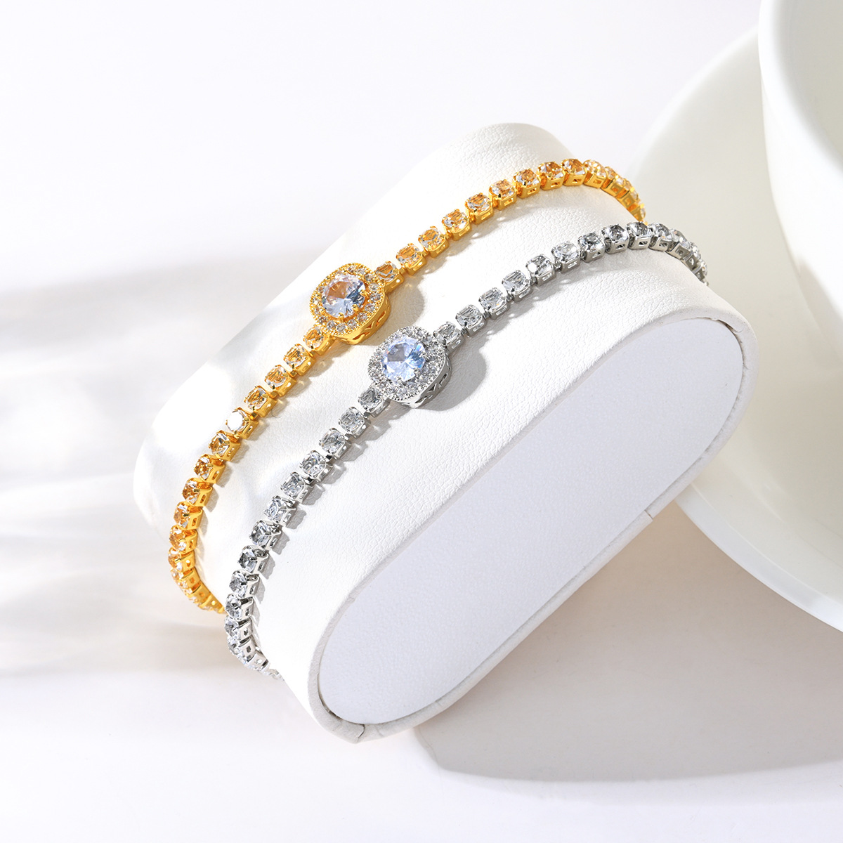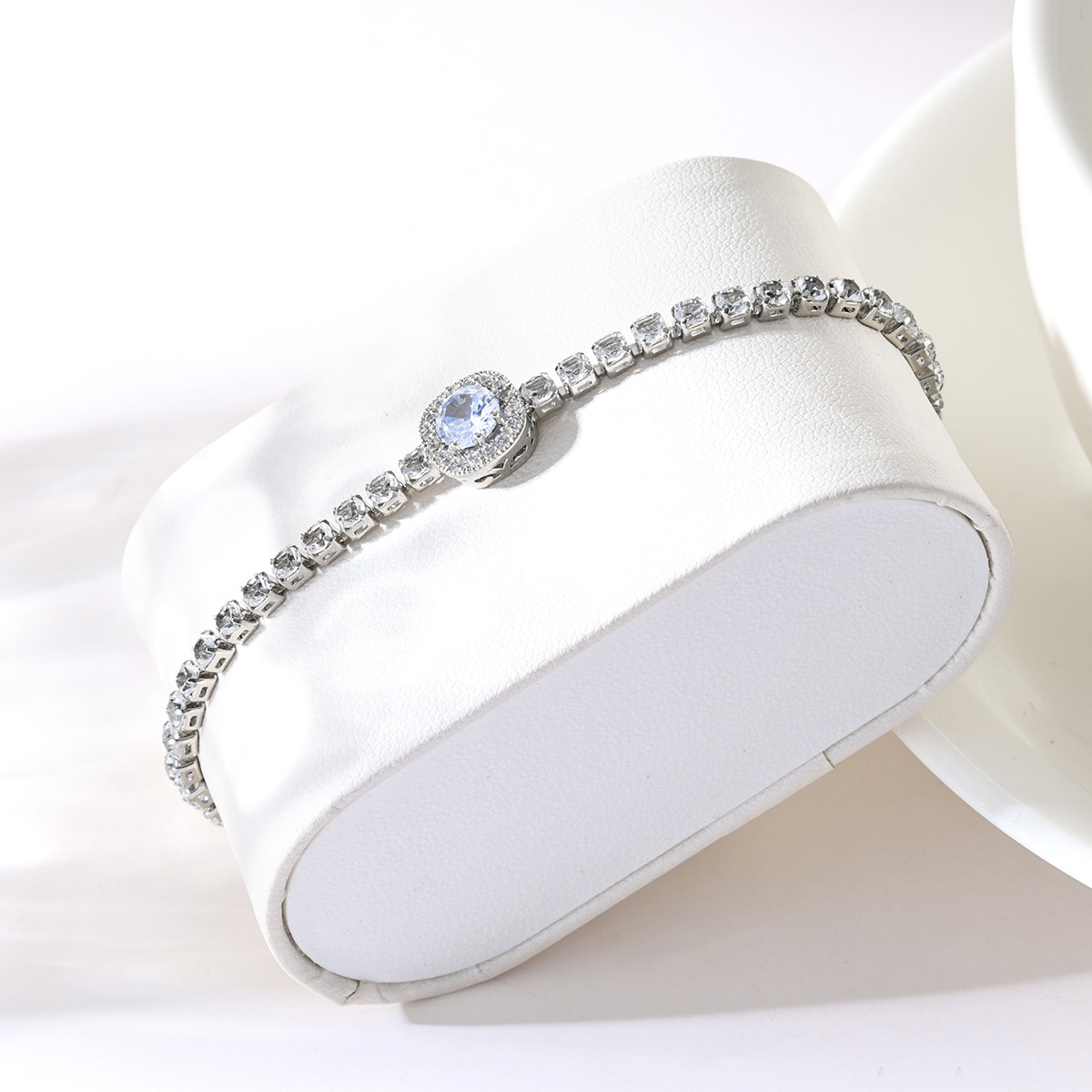 Pulsera de Zirconia en Forma de Corazón en Oro Rosa, Nueva Moda Más Vendida de Longhe, Pulsera Sencilla de Aleación con Incrustaciones de Diamantes para Mujer