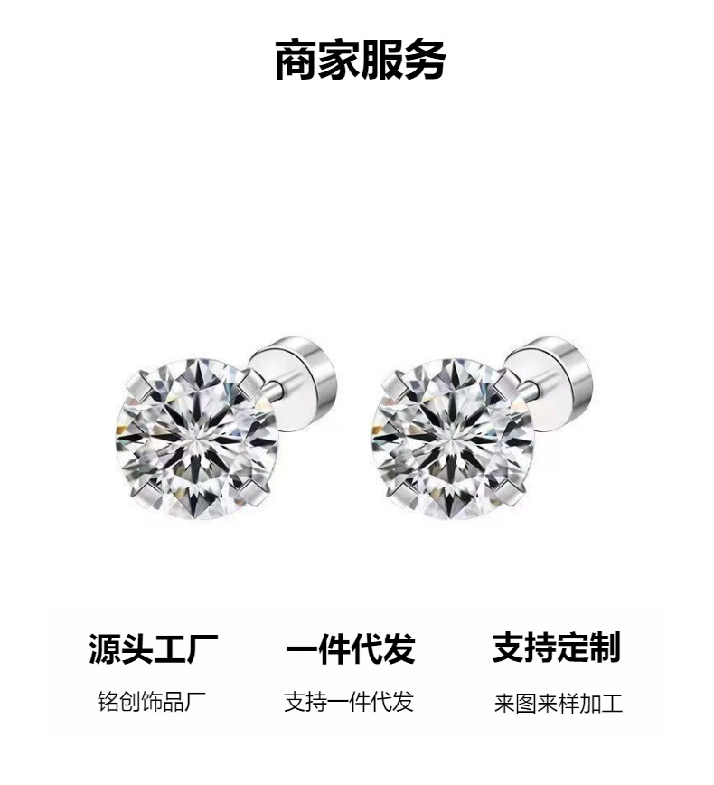 Transfronterizos cuatro garras zircon orejetas de acero de titanio agujas de soldadura de diamante tornillo tornillo orejetas joyerías de moda al por mayor