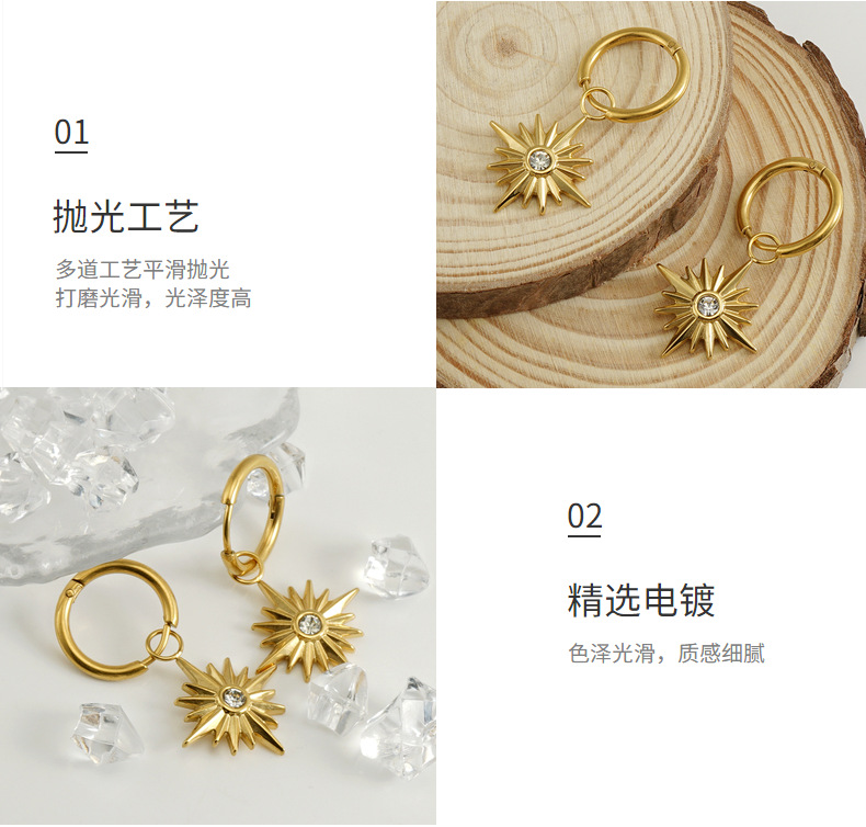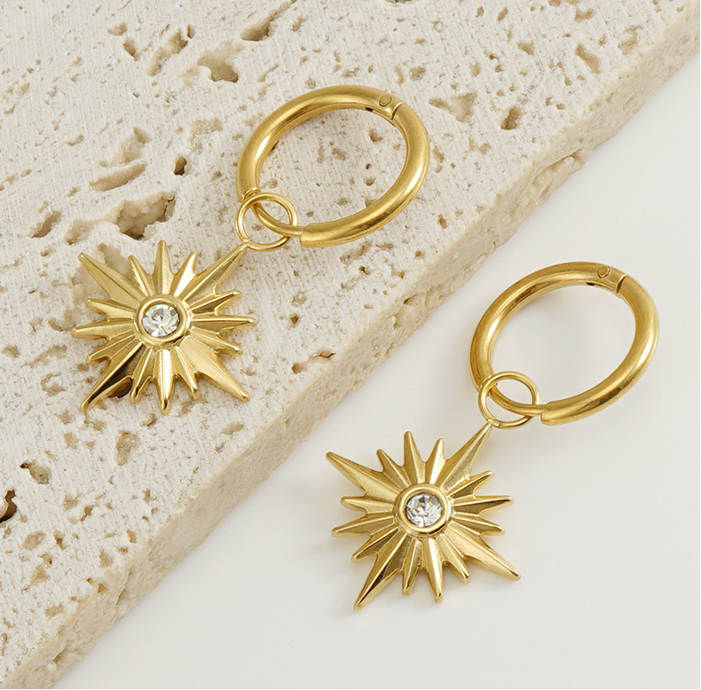 Cruz-Frontera de acero inoxidable de moda europea y americana diamante ocho Awn estrella pendientes colgante de titanio de acero 18K pendientes de oro pendientes para las mujeres