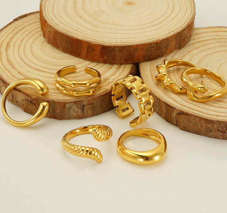 Transfronterizo nuevo anillo irregular ajustable abierto de acero inoxidable hembra europea y americana anillo de geometría de lujo ligero al por mayor