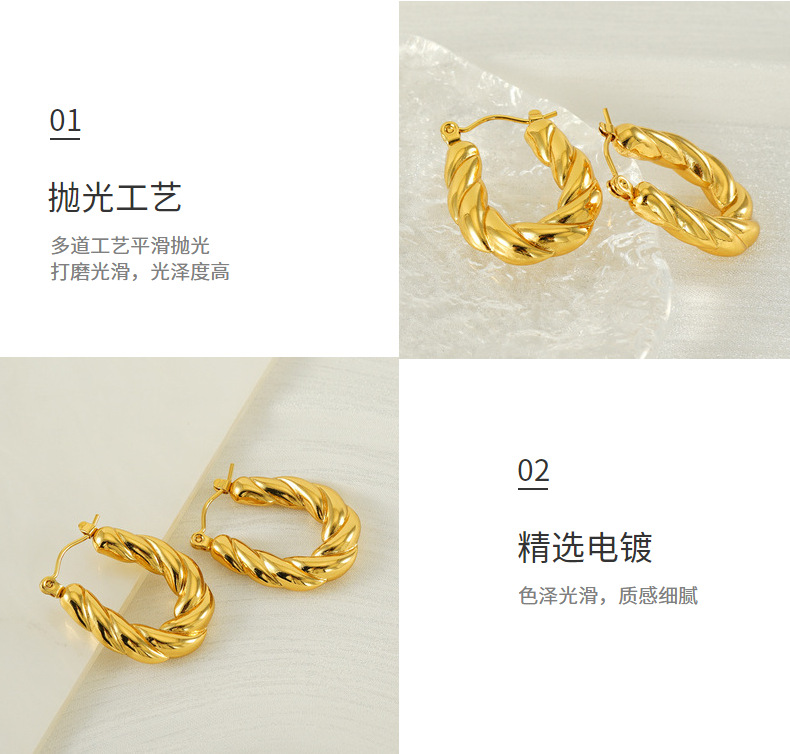 Orejas en forma de U de viento INS atmosférico transfronterizo europeo y americano, hebilla de oreja, pendiente de giro de acero inoxidable de alta calidad para mujer, fábrica al por mayor