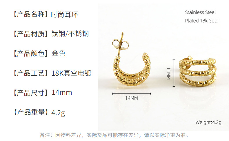 Nueva moda europea y americana de acero inoxidable pendientes en forma de U exquisito versátil estilo simple pendientes de acero de titanio 18K Internet famosos