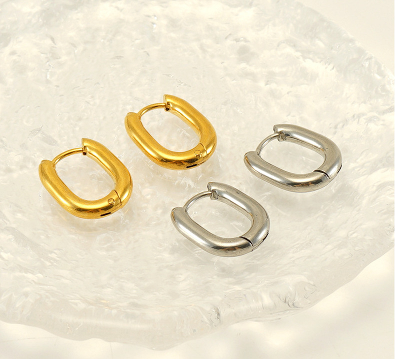 Estilo europeo y americano simple ins estilo titanio acero lote flor oreja hebilla pendientes oro Acero Inoxidable Bobina pendientes al por mayor