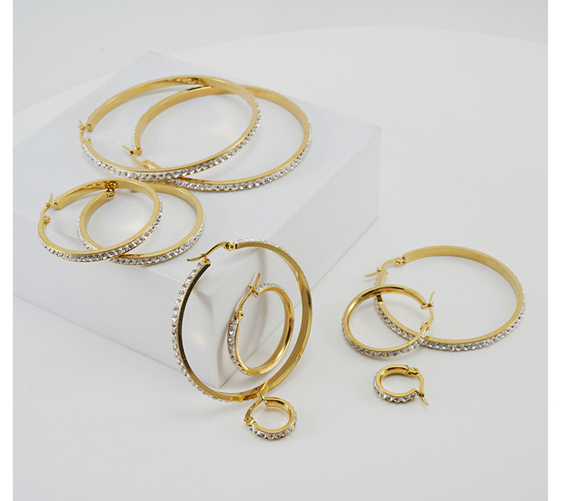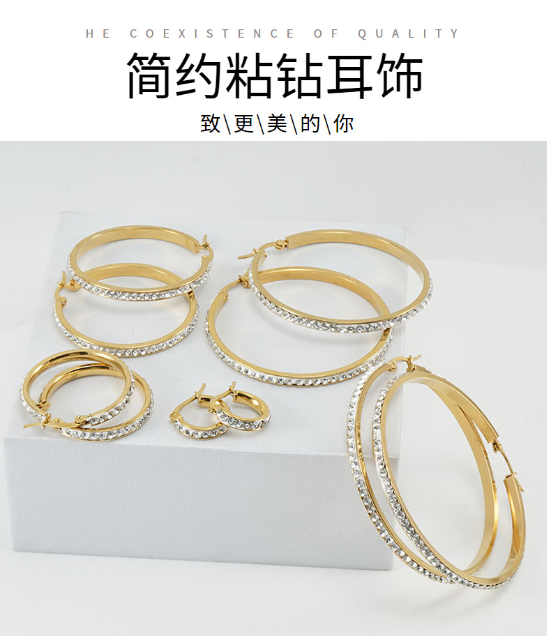 Nueva línea de oreja redonda cuadrada de acero de titanio pendientes de diamantes de imitación de oro femenino personalidad exagerada Diamante pendientes de todo fósforo de la joyería