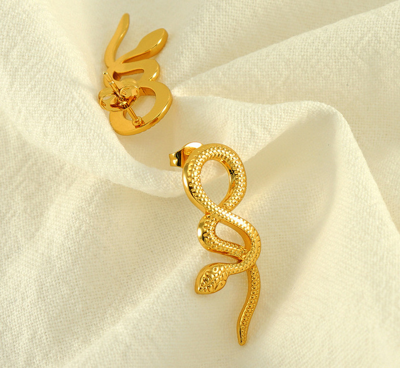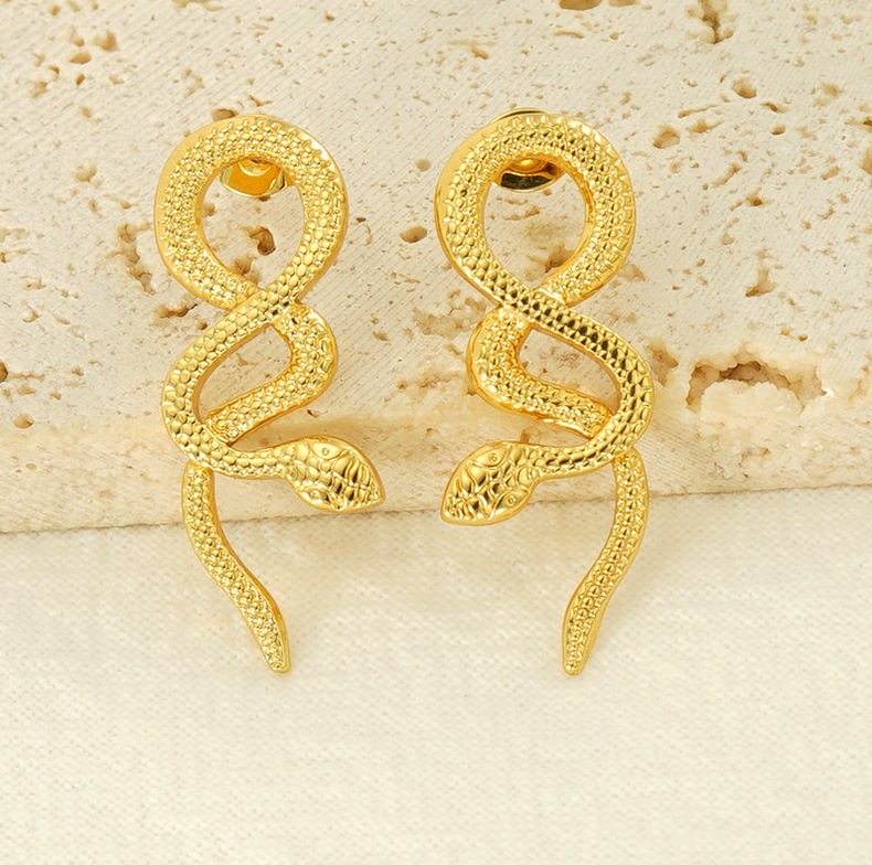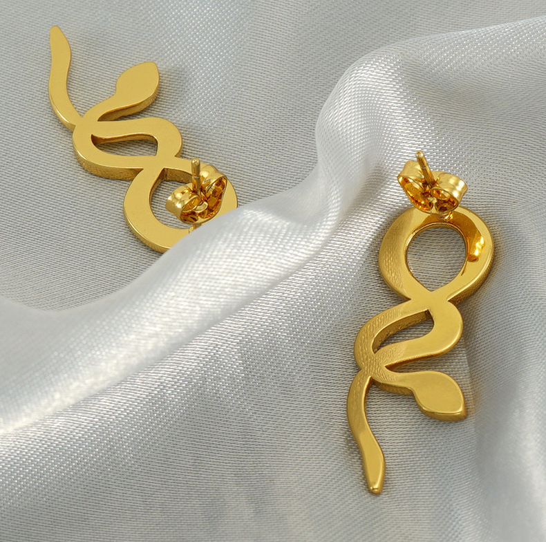 Moda europea y americana transfronteriza personalizada estilo INS 18K oro Acero inoxidable serpiente pendientes de la vendimia de las mujeres pendientes al por mayor