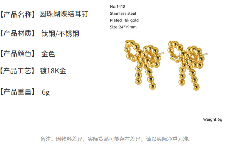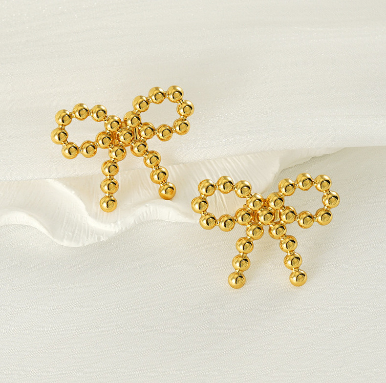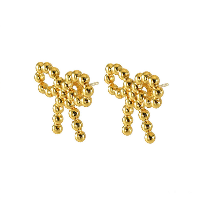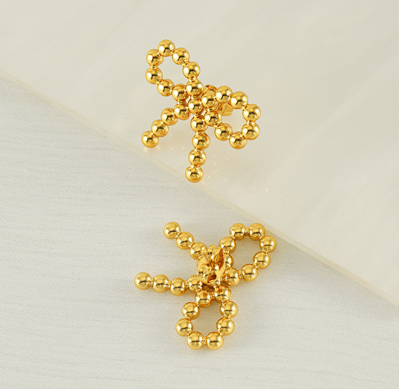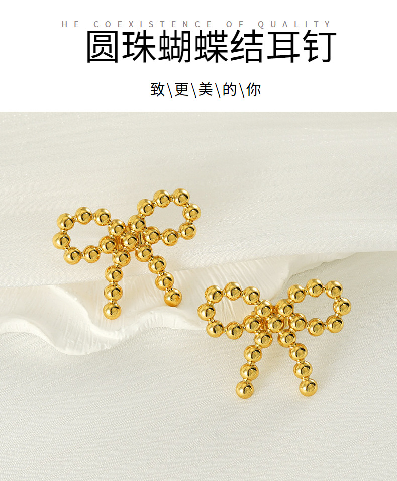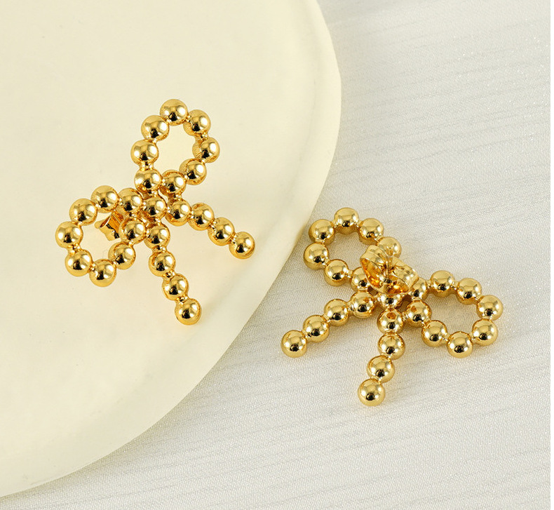 Transfronterizo europeo y americano estilo ins nueva personalidad tendencia chapado en oro de 18k cuentas redondas de acero inoxidable aretes de lazo pendientes accesorios