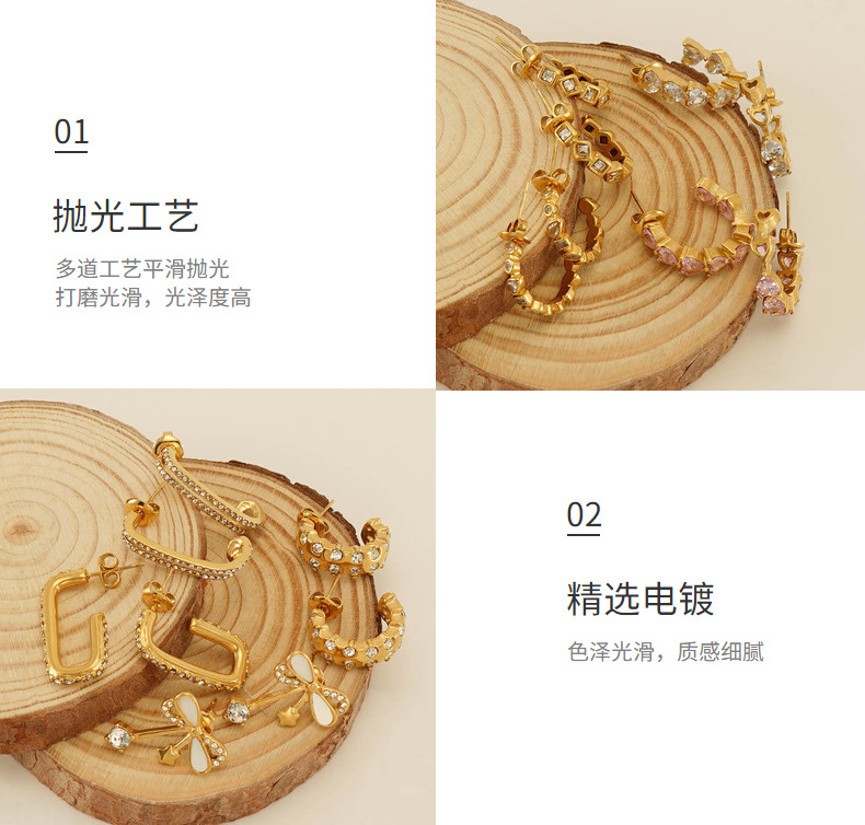 Cruz-frontera nuevo acero inoxidable 18K Luz de lujo pendientes de diamantes hembra nicho europeo y americano personalizado pendientes de diseño al por mayor