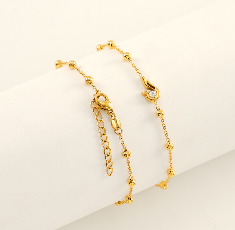 Europa y los Estados Unidos de alto nivel de sensación de arco de acero inoxidable brazalete de lujo ligero joyería dorada brazalete de zircón mujer