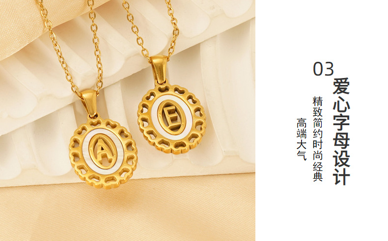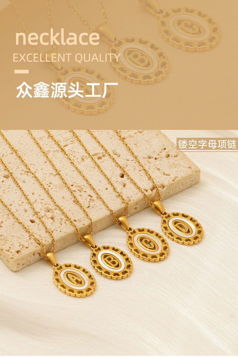 Europa y América titanio amor hueco colgante de letras para mujeres Amazon estilo universal simple collar de letras oval para mujeres