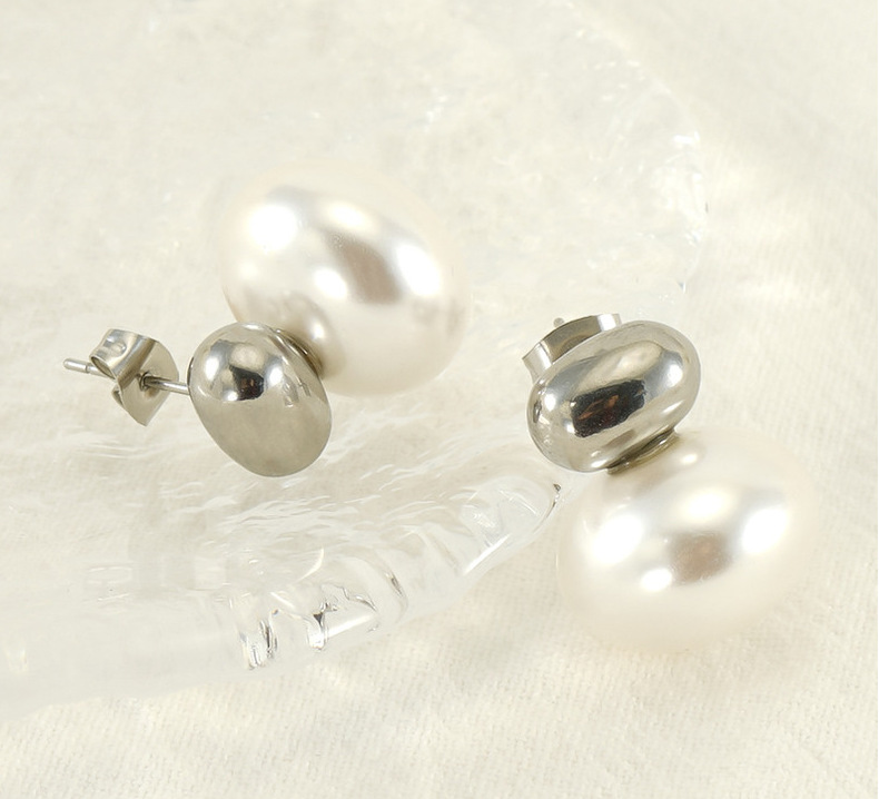 Pendientes de perlas retro francesas Pendientes de alta gama europea y americana de acero de titanio femenino Pendientes de lujo ligero de temperamento de 18K joyería al por mayor