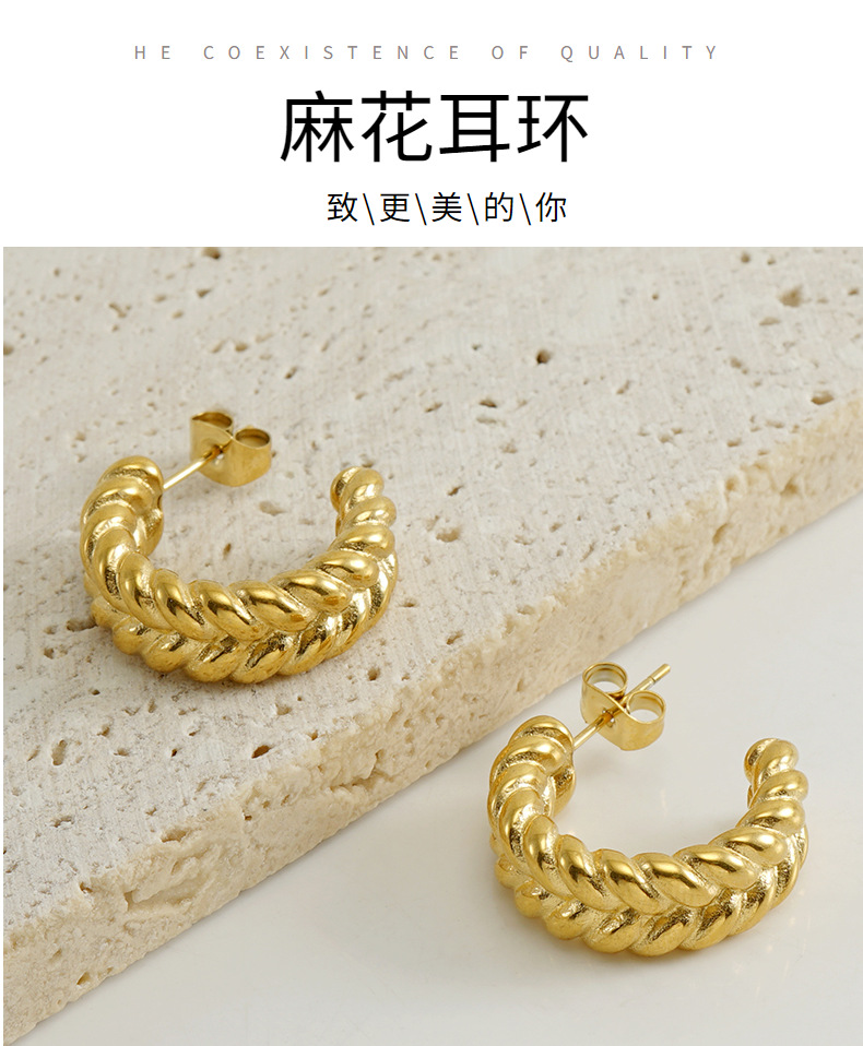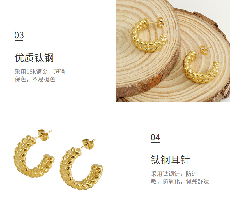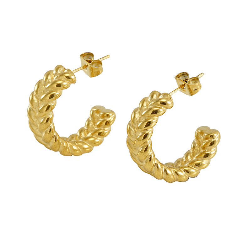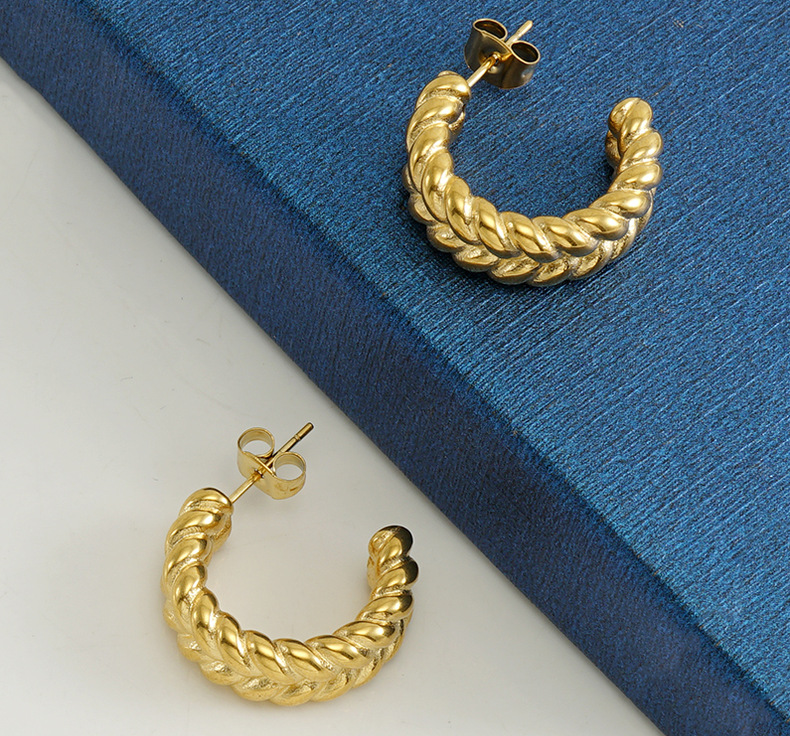 Acero inoxidable transfronterizo moda europea y americana giro personalizado en forma de C pendientes de titanio de acero 18K oro Internet celebridad pendientes de la oreja