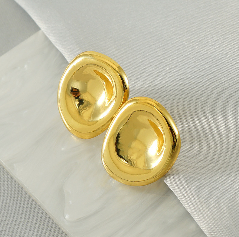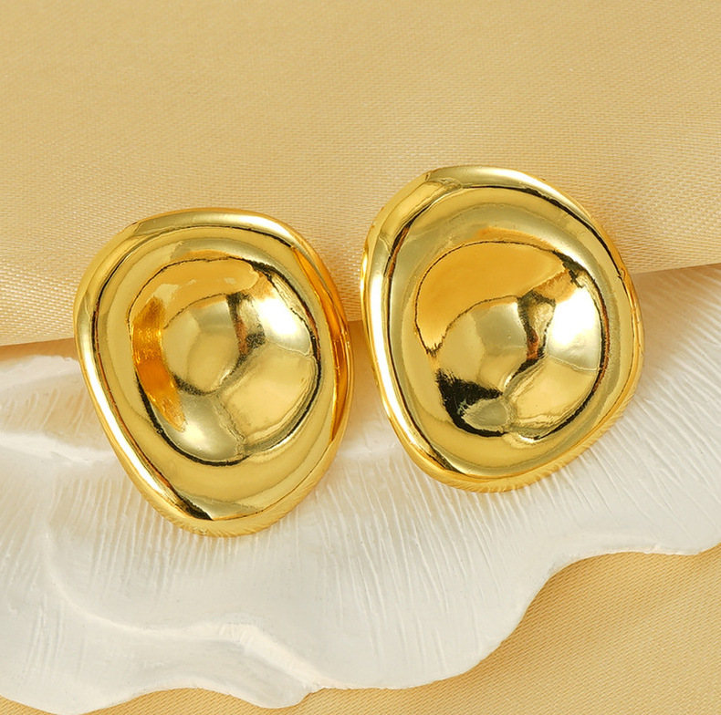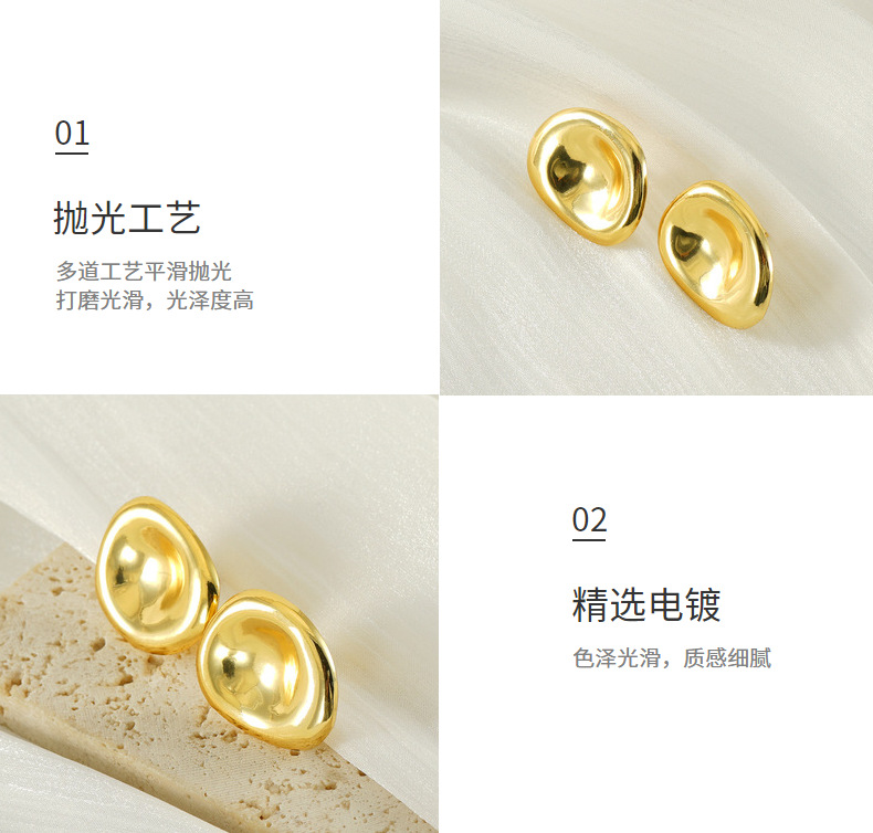 Pendientes clásicos de moda ovalada irregular de nuevo estilo chapado en acero inoxidable cóncavo de 18K Pendientes de personalidad simple y única