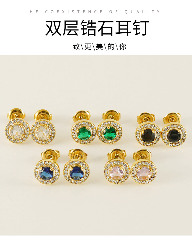 Pendientes de circón de acero de titanio de estilo europeo y americano hembra 18K de acero inoxidable de doble capa pendientes de diamantes de nicho de diseño de alto grado pendientes