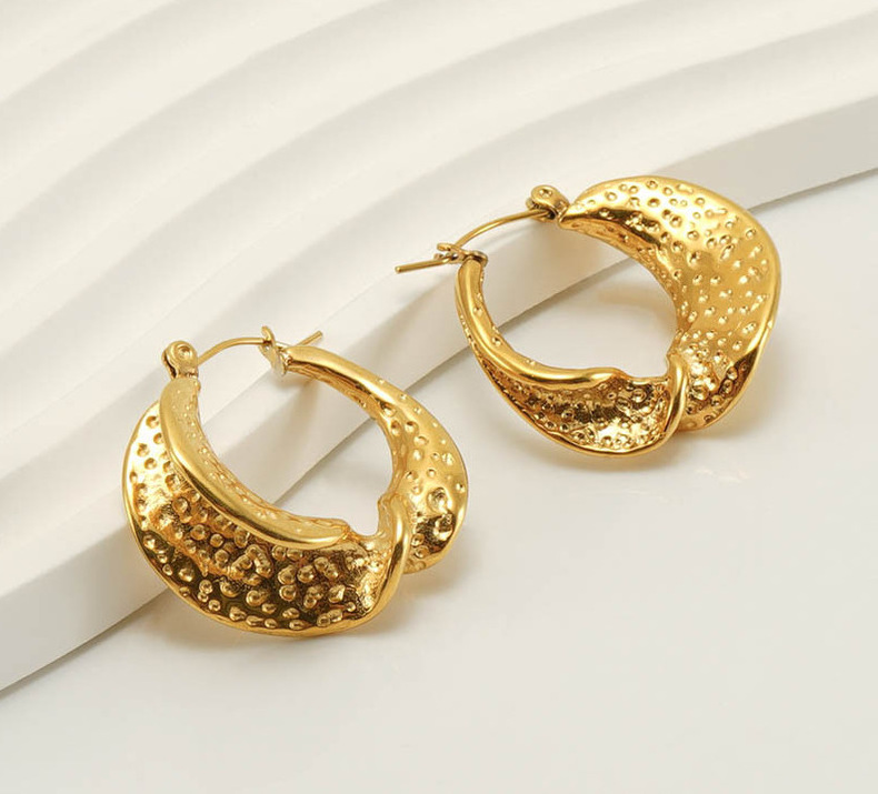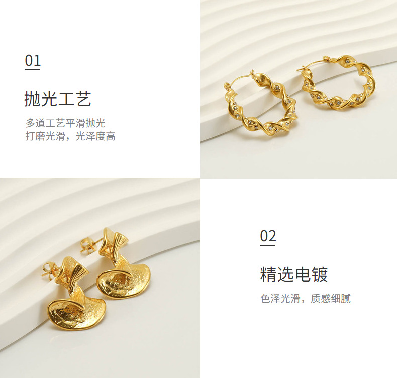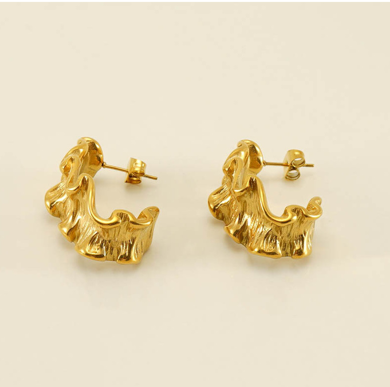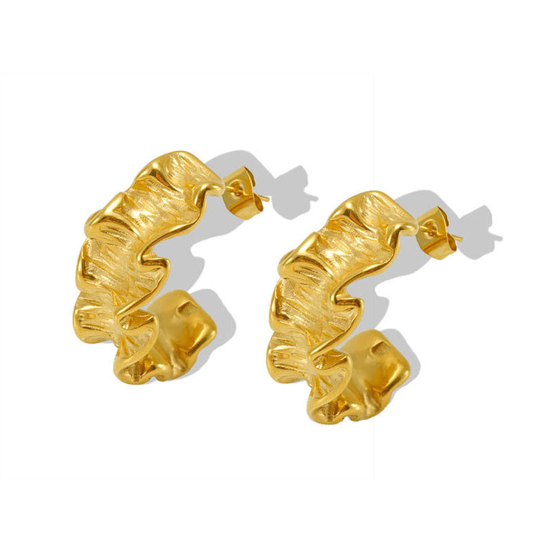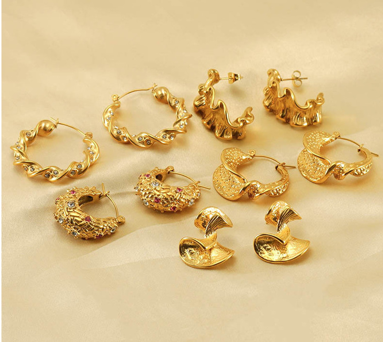 Nueva frontera acero inoxidable 18K personalizado plisado pendientes para las mujeres de estilo francés europeo y americano diamante incrustado luz pendientes de lujo al por mayor