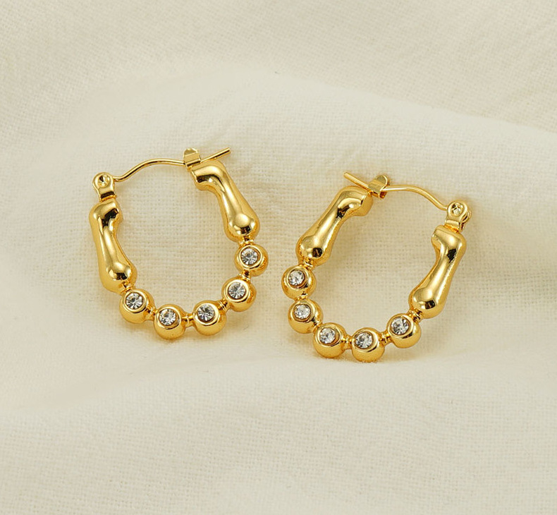Pendientes de perlas de acero inoxidable de estilo de venta caliente transfronteriza pendientes de diamantes irregulares geométricos de oro 18K pendientes de acero de titanio