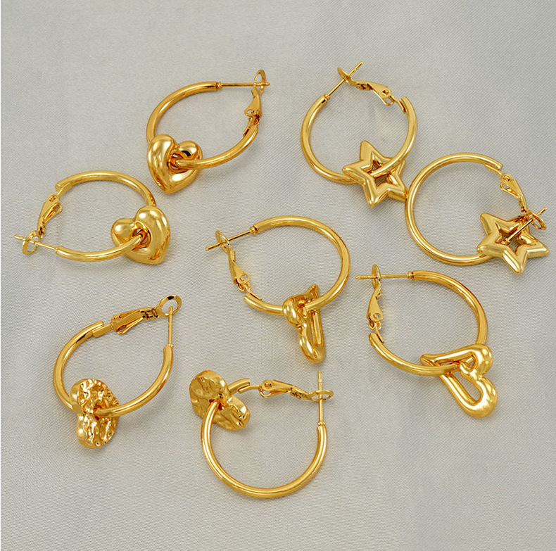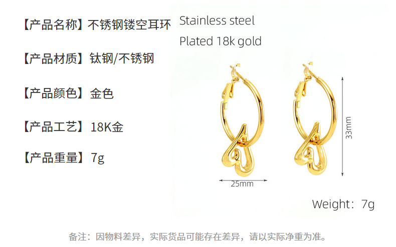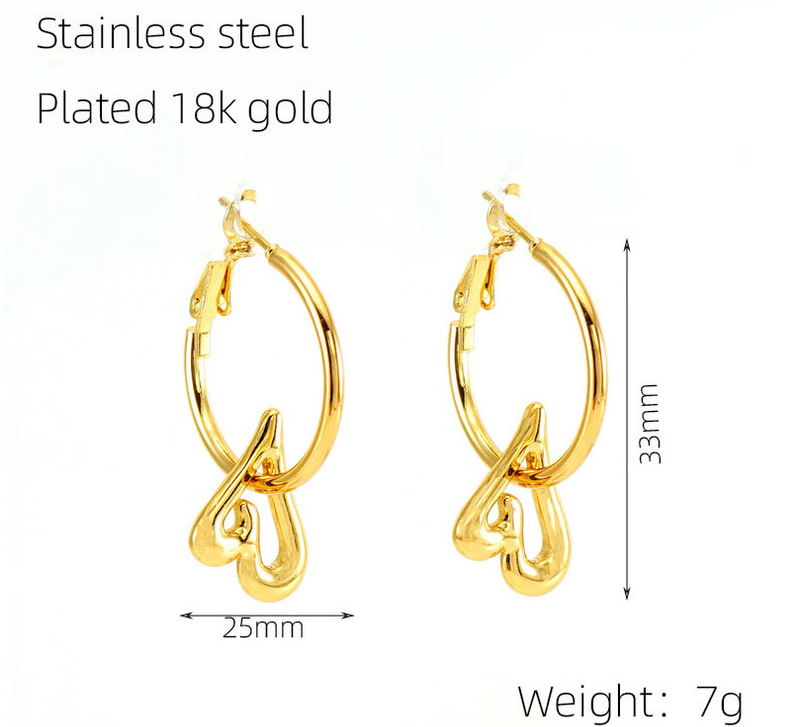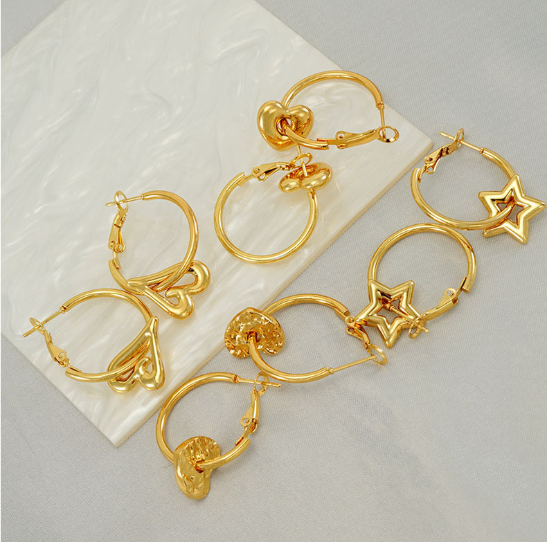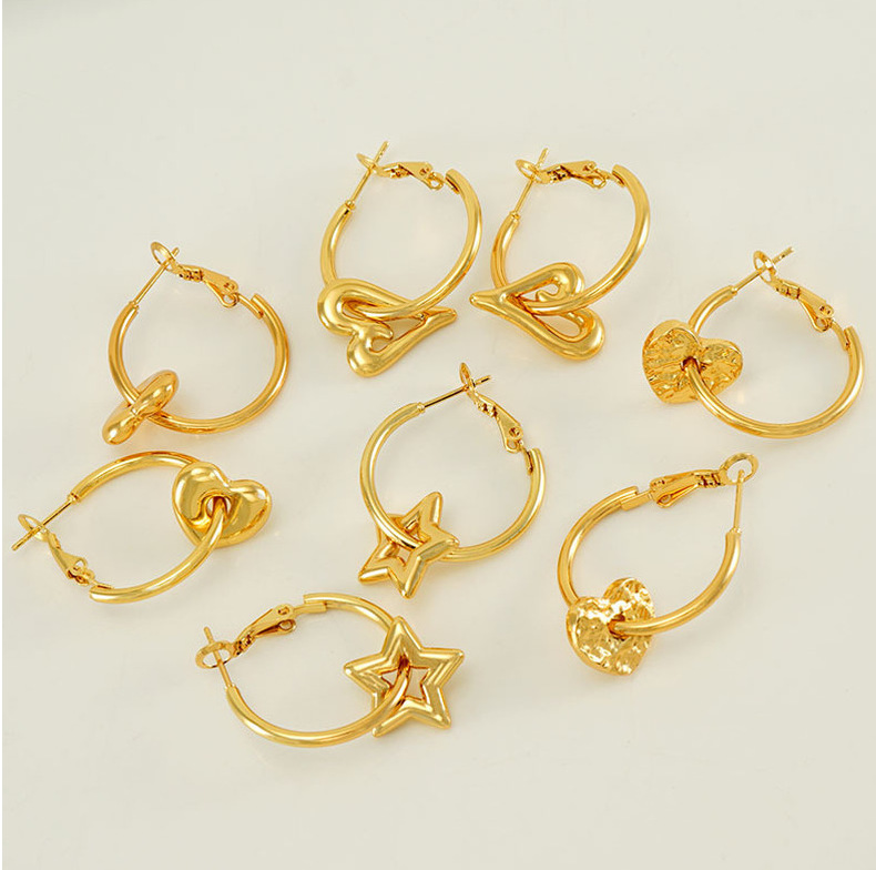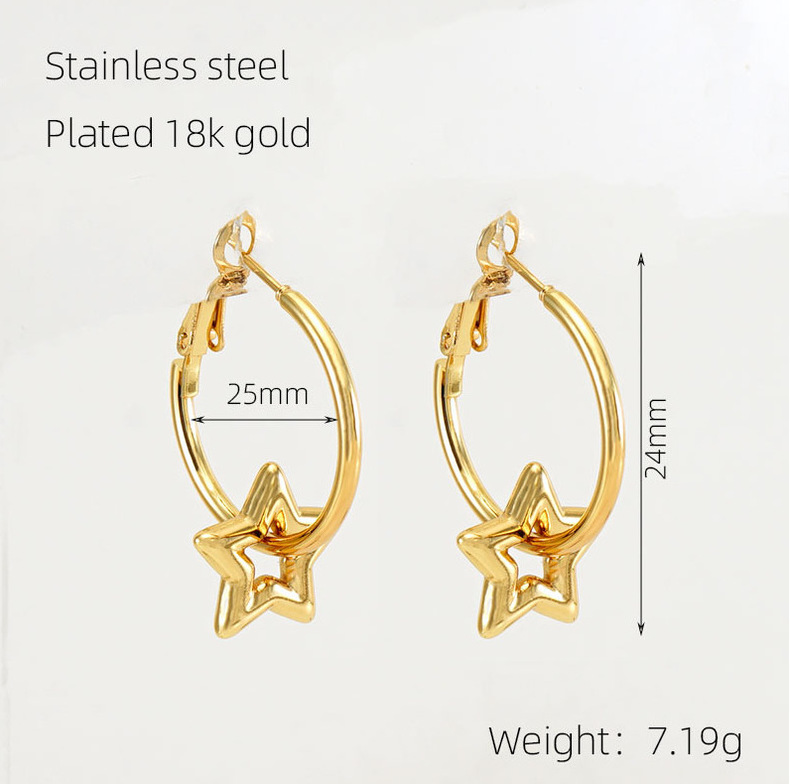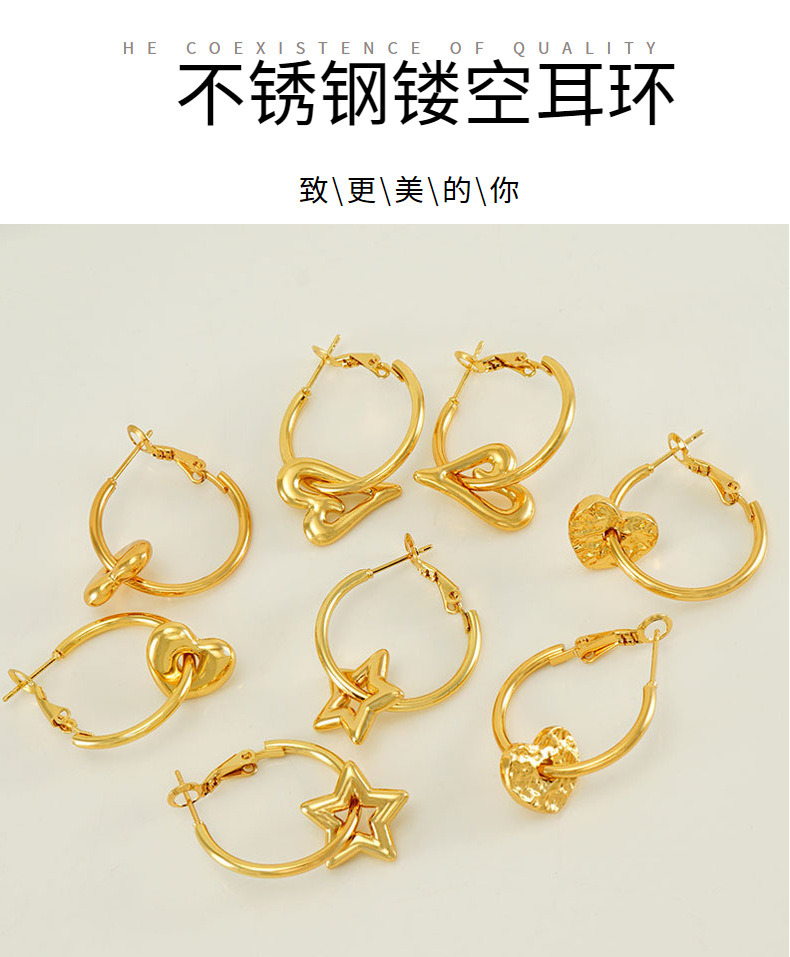 2023 nuevos pendientes de corazón de melocotón de oro 18K transfronterizos femeninos de acero inoxidable europeo y americano diseño hueco pendientes de estrella de amor femenino