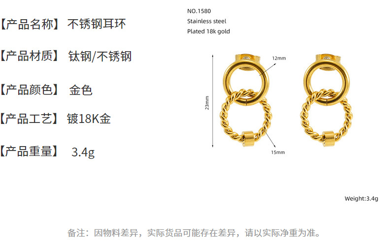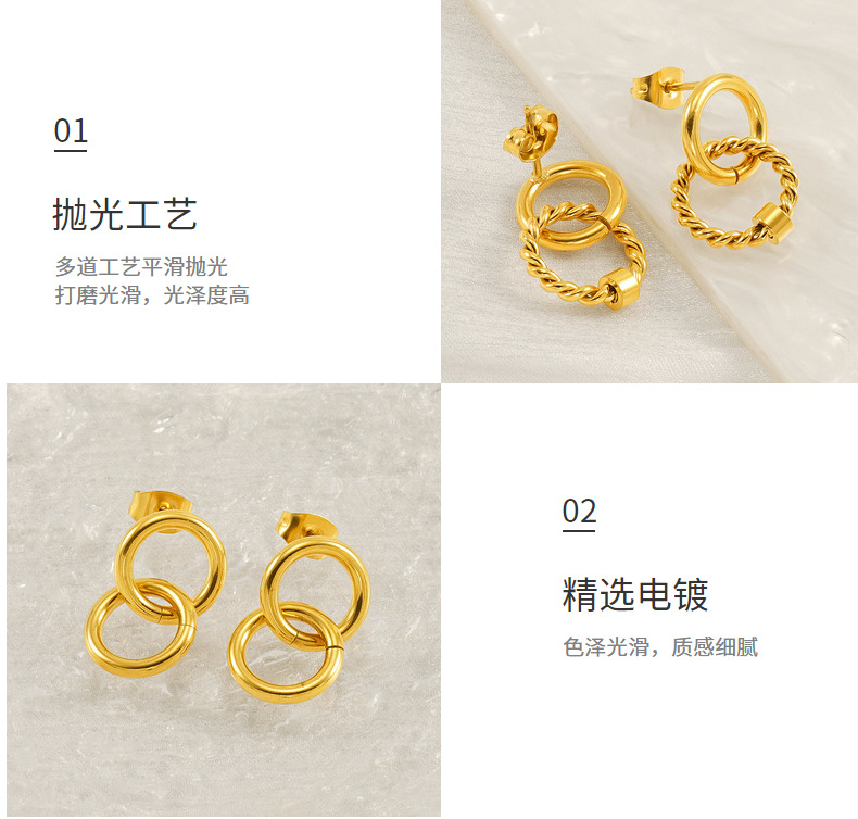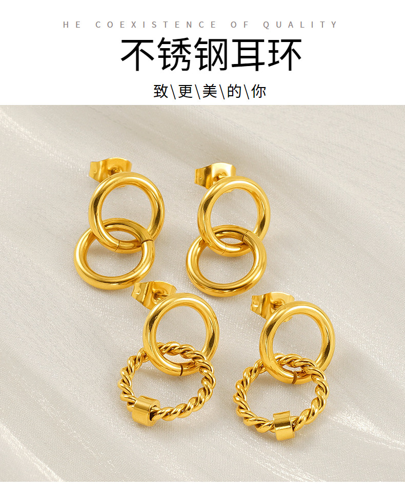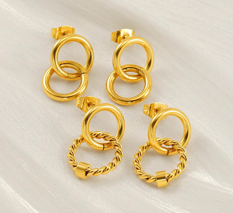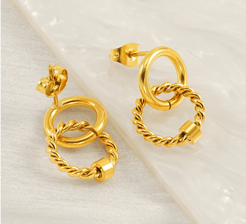 Pendientes de oro de 18k estilo INS Pendientes de anillo de tamaño de acero inoxidable Pendientes de acero de titanio entrelazados de anillo femenino Pendientes de acero femenino