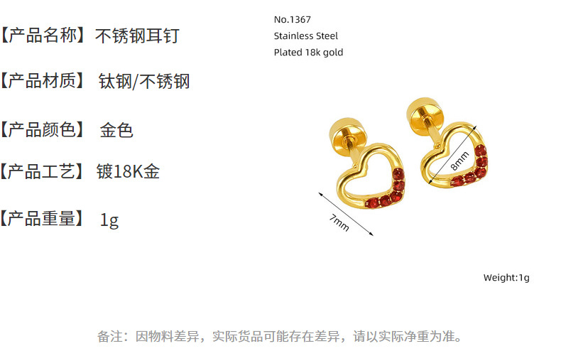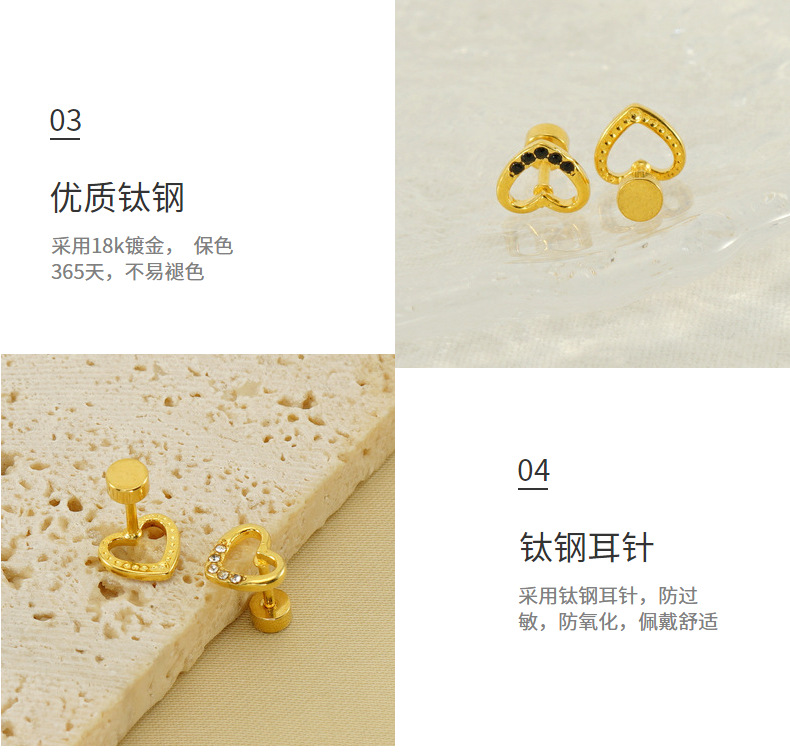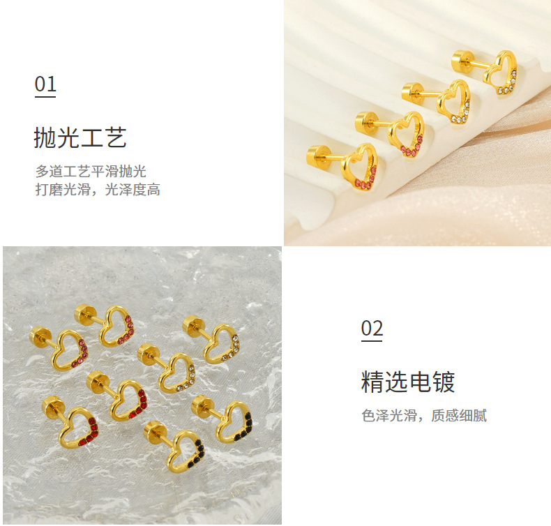 Joyas transfronterizas Pendientes de hilo al por mayor Pendientes pequeños de diamantes de amor Pendientes en forma de corazón hueco de acero de titanio viento ins mujer