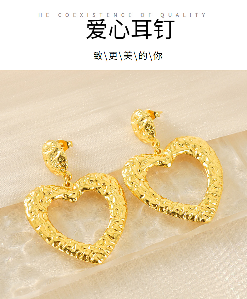 Estilo ins retro exageración atmósfera de alto nivel amor pendiente de lava patrón de martillo de acero inoxidable pendiente en forma de corazón mujer